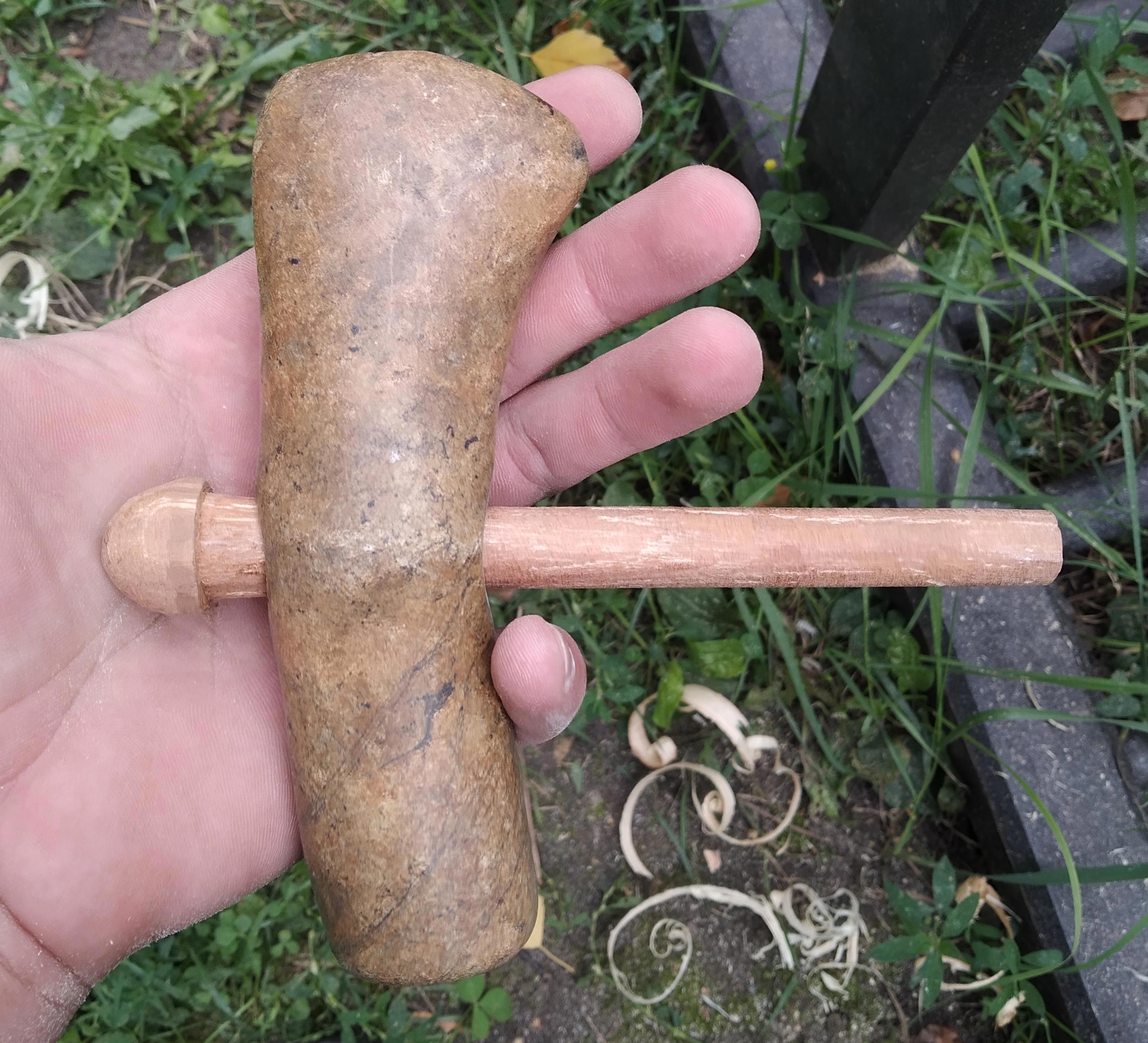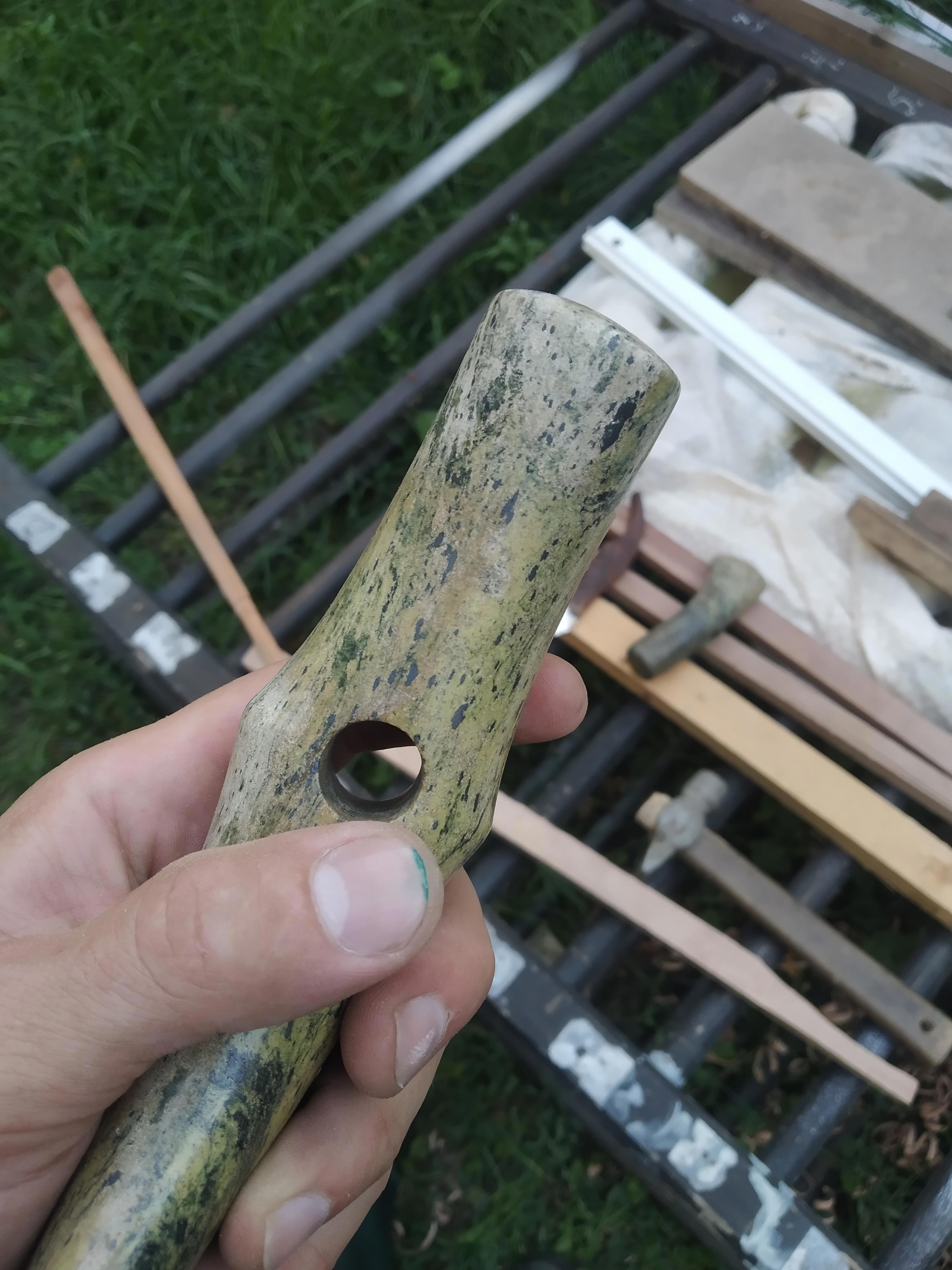 П.С: а реплику я все же раздолбал позднее, сам топор, не топорище. Все же змеевик — не слишком прочный камень.