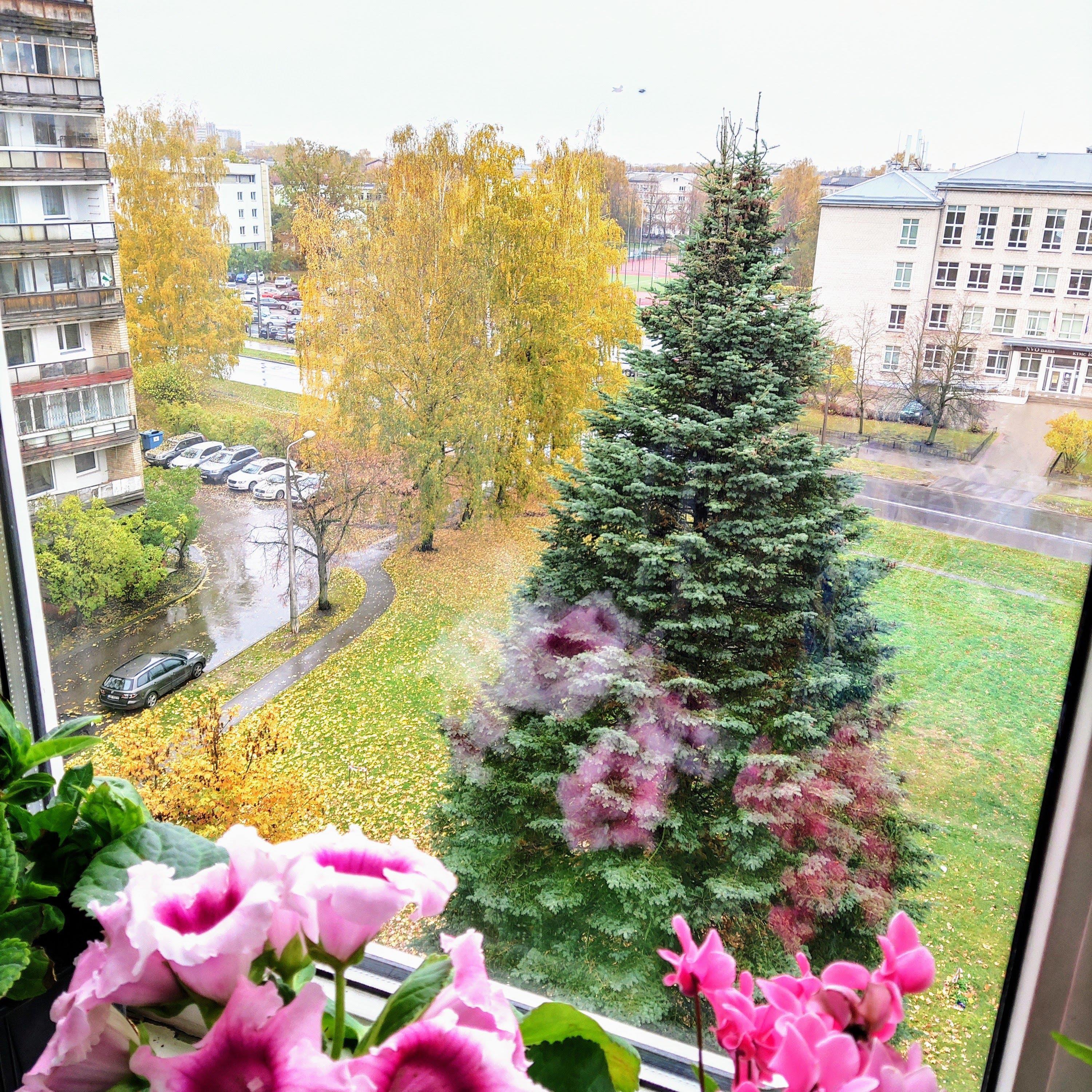 Из окна видна вышка телебашни, между прочим, четвертой по высоте в Европе (368,5 м). Не вся конечно, но где-то третья часть видна точно.