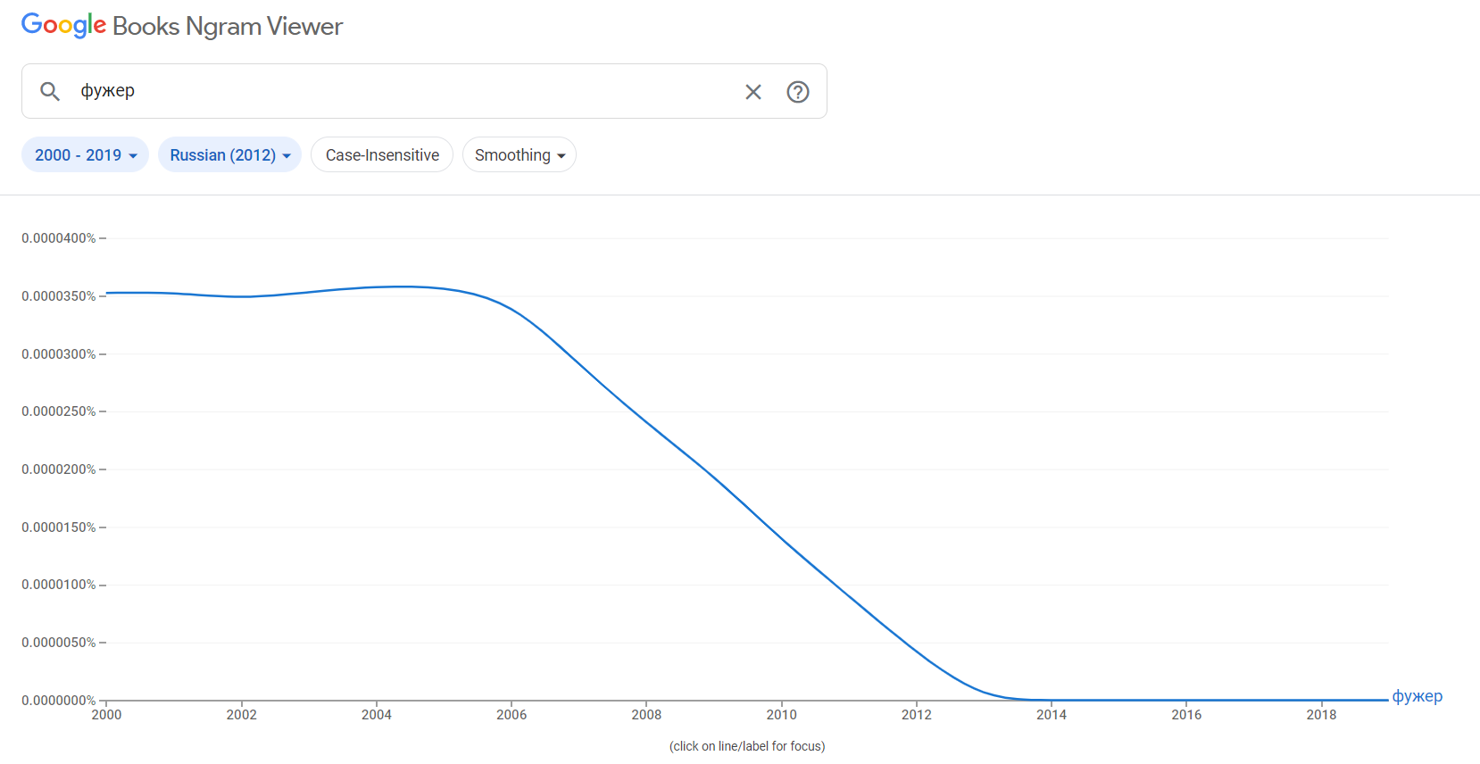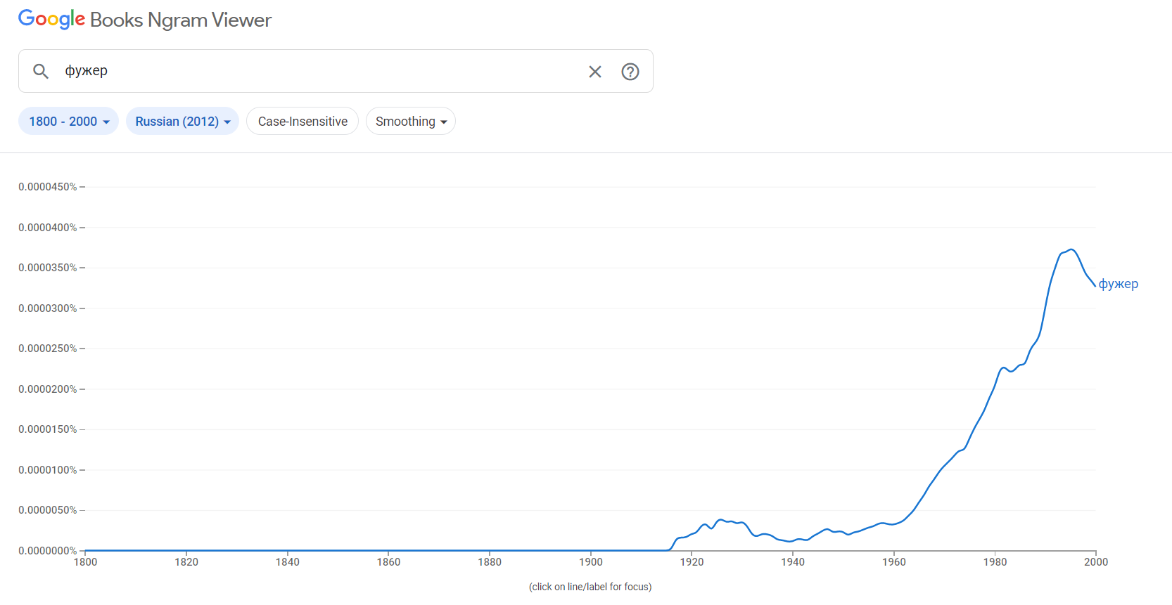 И "фужерские бокалы" с течением времени сократились до "фужеров". В конце XIX века слово «фужер» вошло в русский язык, как название бокала для шампанского. Но общеупотребительным сделалось только после революции, что показывает частотная диаграмма.