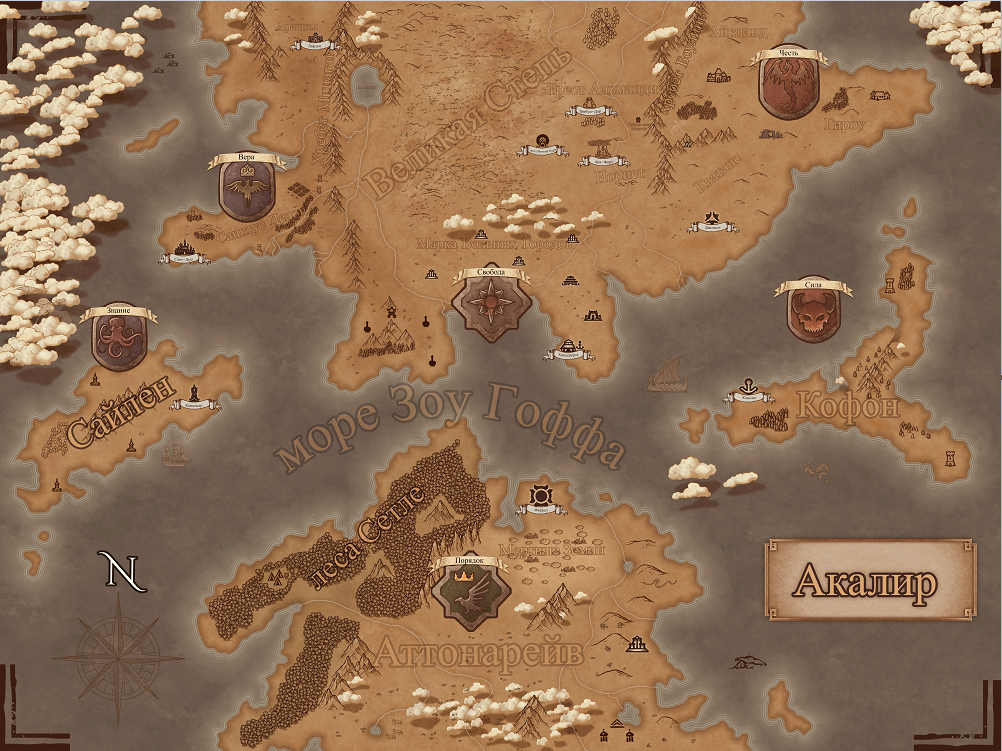Автор: Марат Жанпейсов (TheMJdex)Сделал карту активного региона, в котором будут происходить события нового цикла. Постарался выдержать стиль старых пергаментных карт, но грязи получилось маловато
