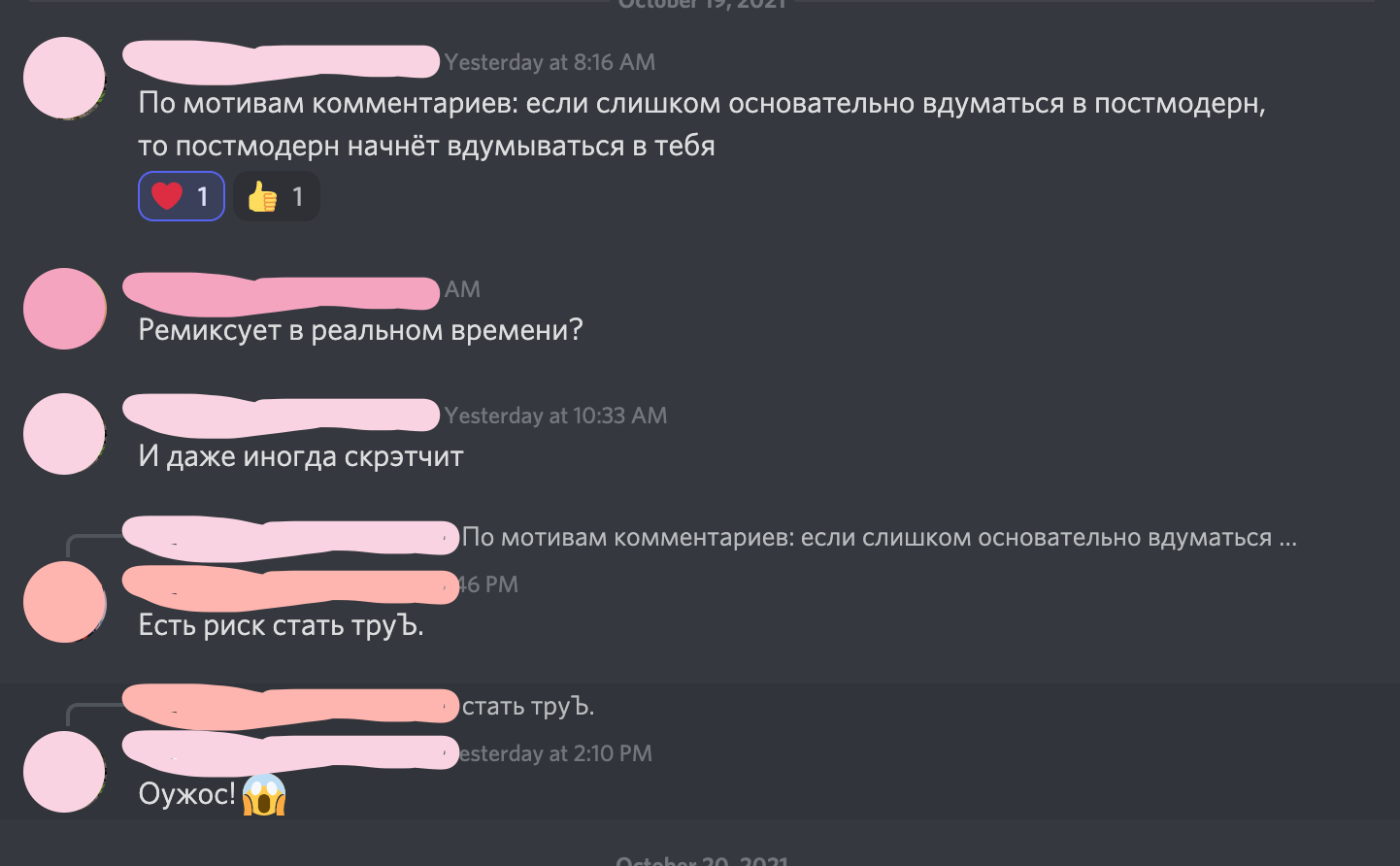 Никто не мог предположить влияния концентрированного постмодернизма на умы.