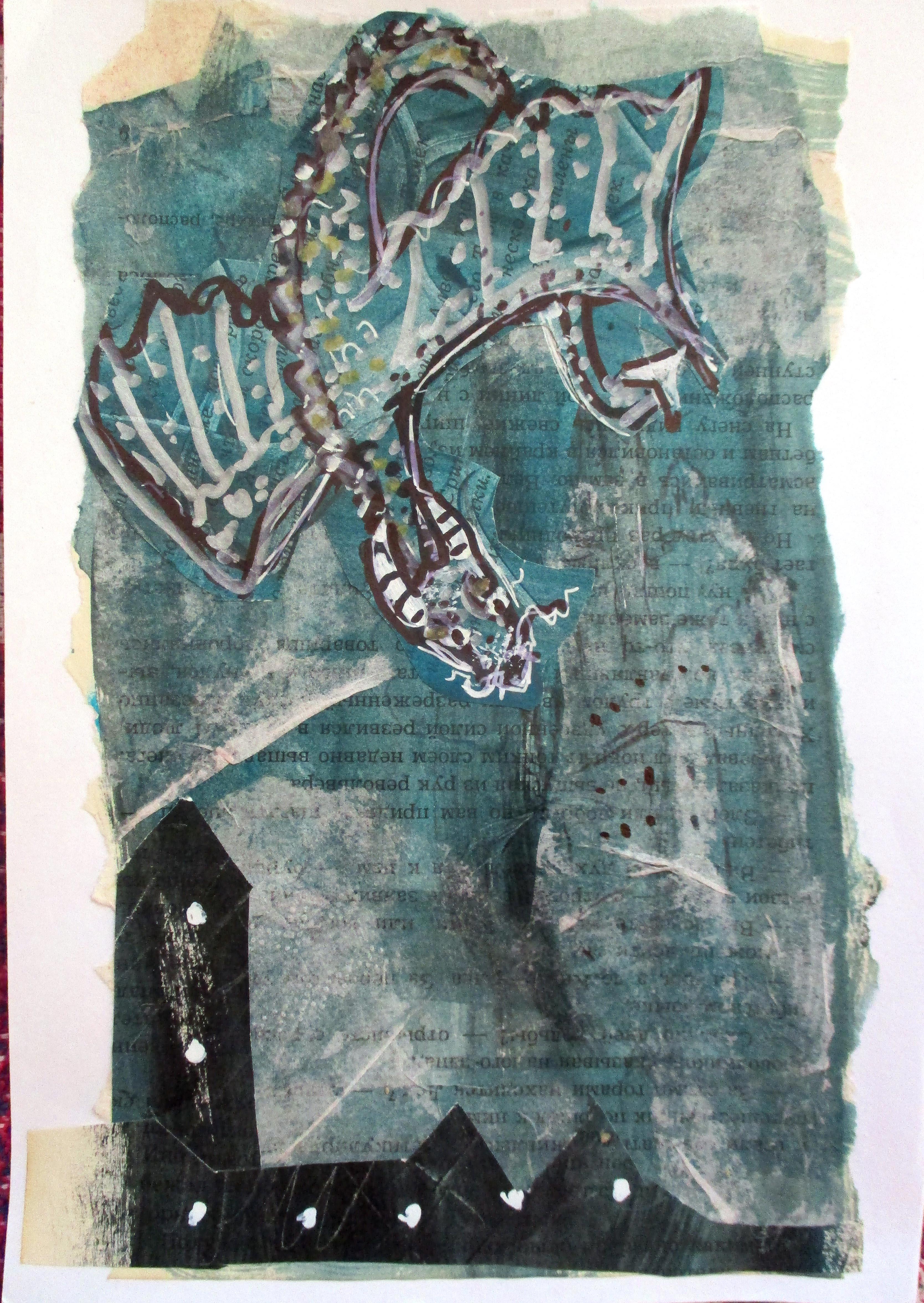 Когда начинала практику, думала создать коллажи на тему своих книг. Вот как этот про дракона. Но пока такого цикла не вышло. Из законченных 8 работ только 3 перекликаются с моими историями. Остальные вышли разные и в одну коллекцию никак не объединяются. Видно, придётся делать 3.