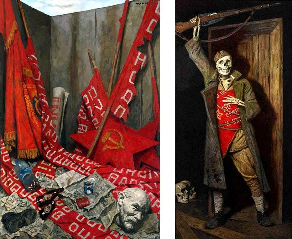 Даже центральная работа триптиха о коммунистах (первое «программное произведение» художника), «Поднимающий знамя» — не о массовом торжестве, а об одиночестве мужества.