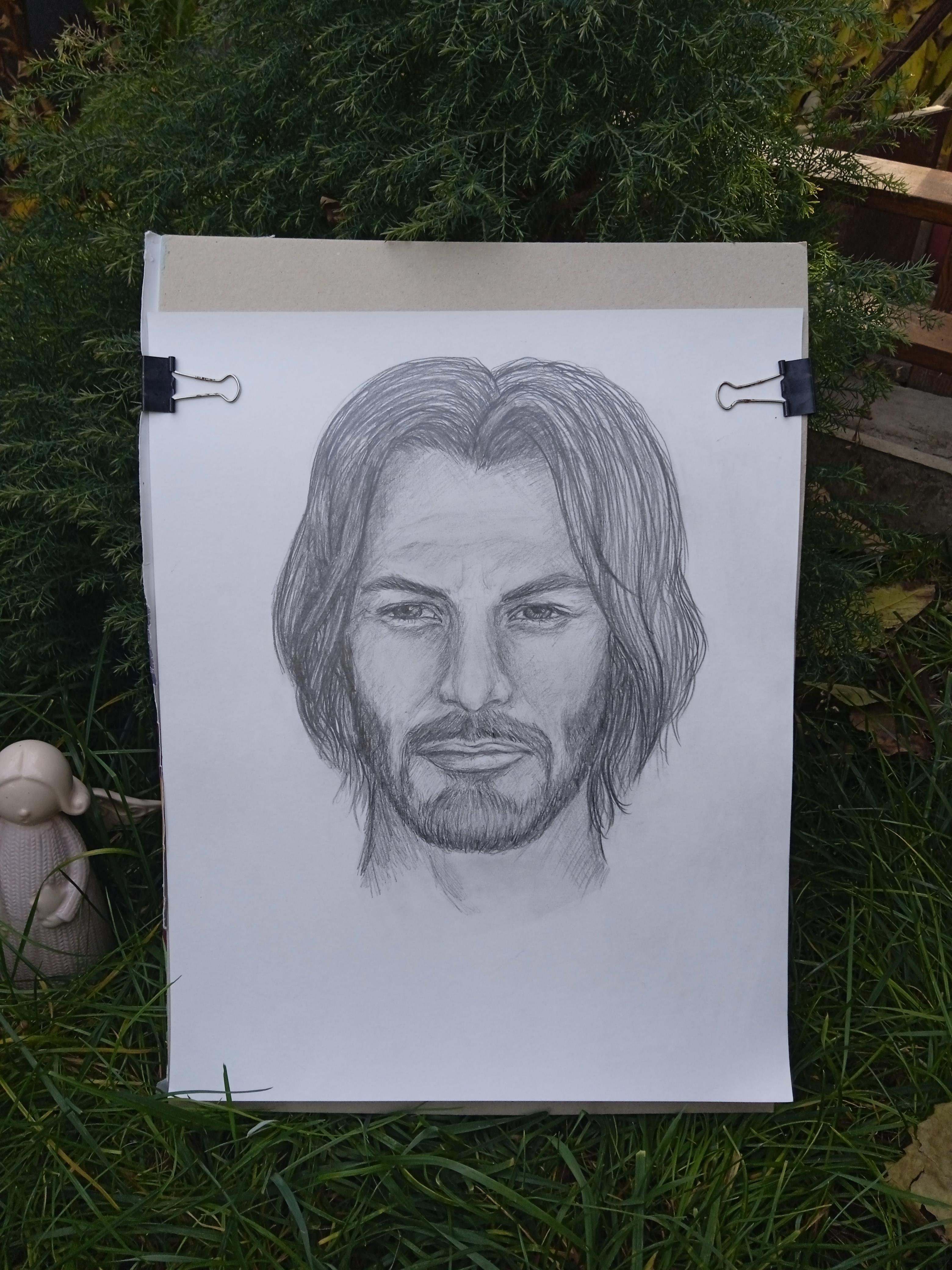 Карандашом портреты я год не рисовала... И я, ленивая скотинушка, как все нормальные люди не использовала несколько карандашей разной твердости-мягкости, а просто взяла карандаш В5 и начала малевать на акварельном листе А3... 1,5 часа дуракаваляния (карандаш не стилус) и вышла очередная фигня, местами похожая на оригинал, но отдаленно и с кучей оплошностей. Но зато из головы, по памяти