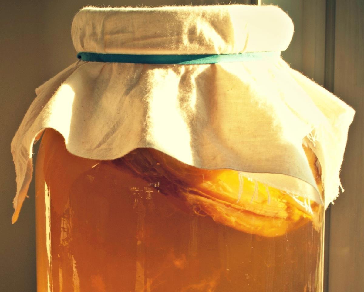 Немного о чайном грибе. Сей напиток употребляю постоянно. Вот такой он у меня в трёх литровой баночке. В планах заиметь пятилитровку, с краником... да руки не доходят. Вот нравится он мне. Вкус опять же от сорта чая менять можно. Правда если перестоит, это реально вырви глаз!