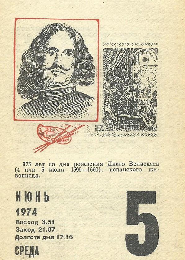 Вот пожалуйста — листок календаря, посвященный Веласкесу.