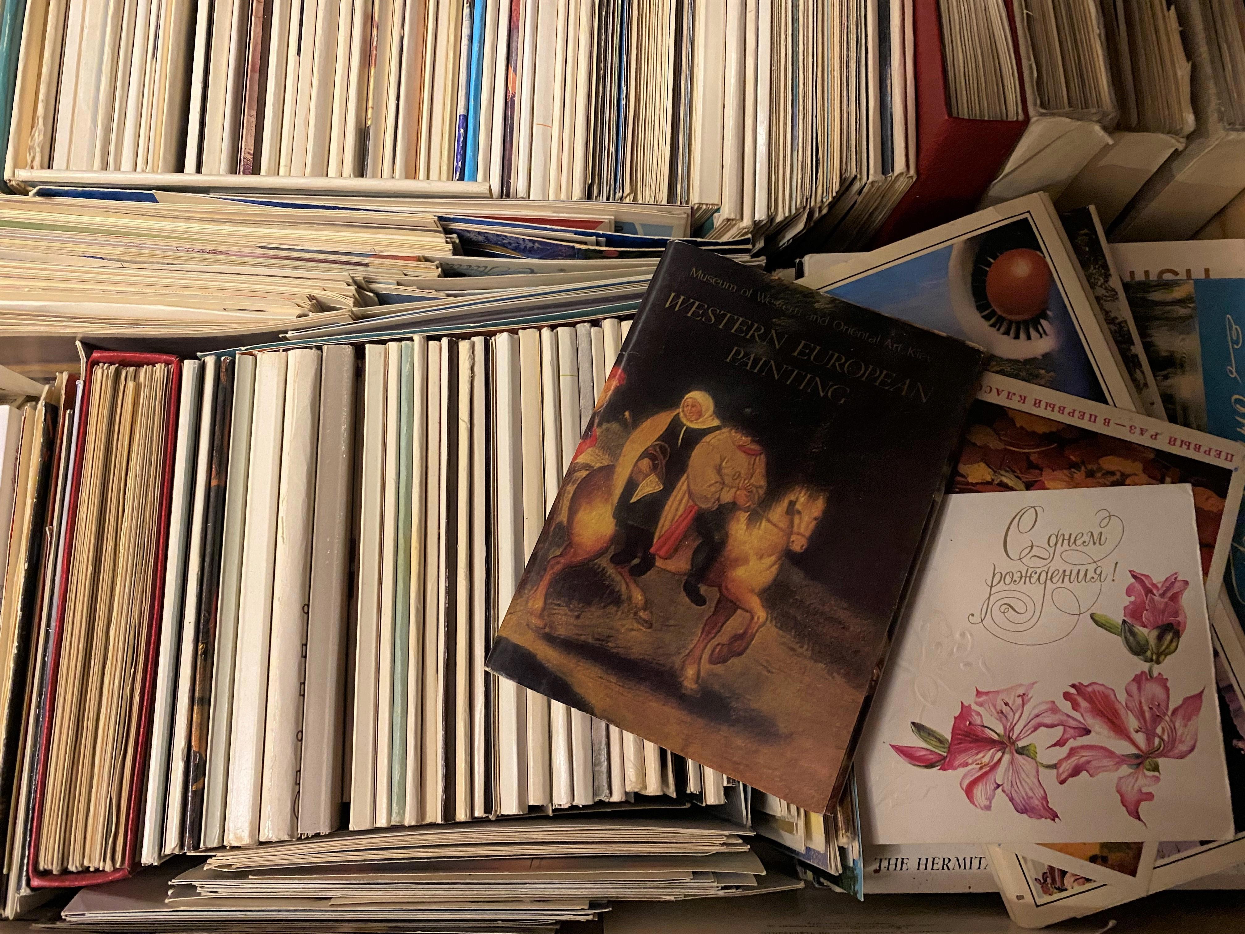 Вот это лишь часть моих открыток. Да, поздравительные открытки тут тоже есть, но в основном это живопись, графика и скульптура. В отличие от альбомов дефицита открыток я не наблюдала ни разу.