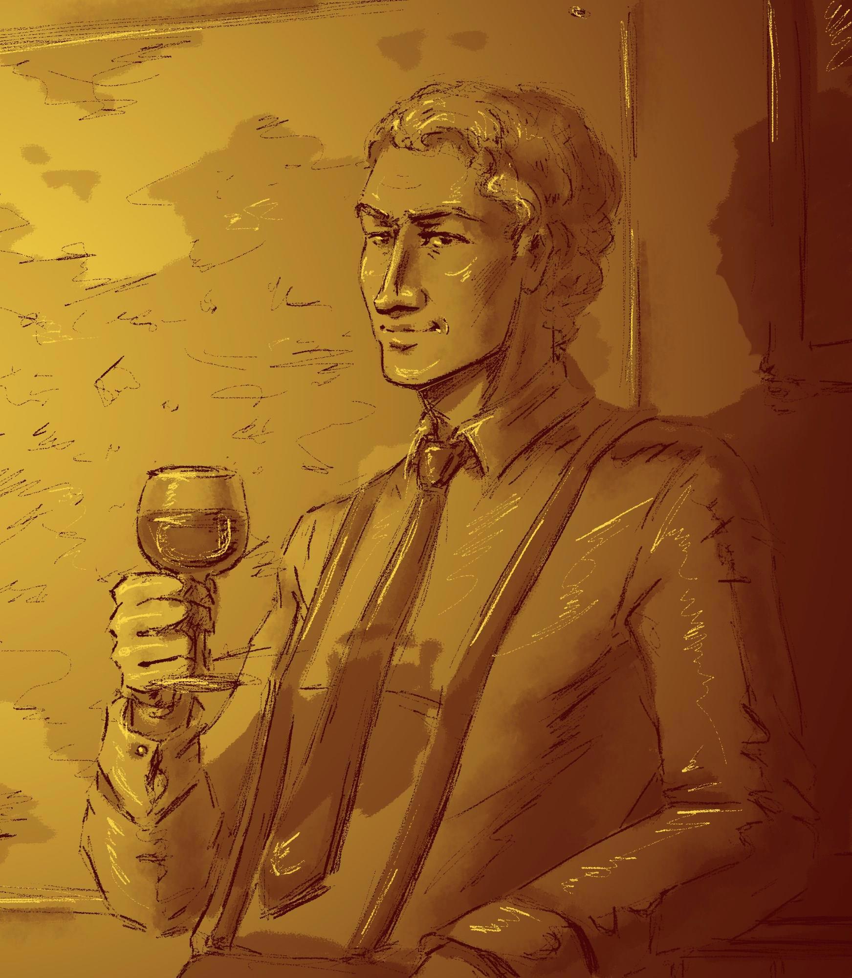 Полгода назад я уже предпринимала неудачную попытку заказать портрет Эриена с его любимым винишком, но, приняв заказ, другая художница отправилась искать музу и потерялась на полпути. Demi Urtch приняла заказ и выполнила его в тот же день! И попросила всего 150 рублей. Это совершенно невероятно!