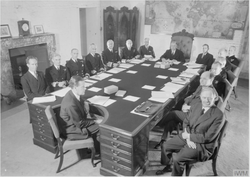 На фотографии запечатлено заседание Совета адмиралтейства 16 июля 1943 года. Тут присутствует только пять морских лордов. К сожалению, мне не удалось отыскать фотографии времён Первой мировой войны, на которой морских лордов было бы восемь.