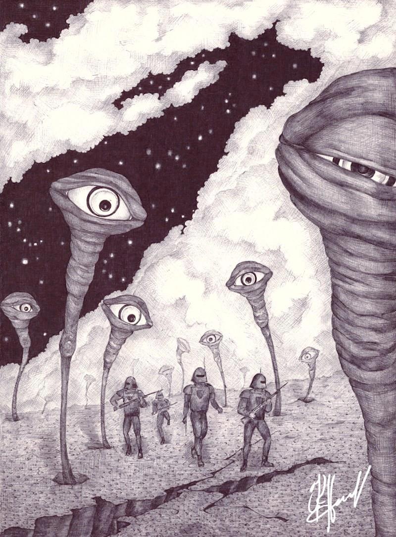 Лидерство, безусловно, у рисунка к НФ-рассказу "Бестолочь".