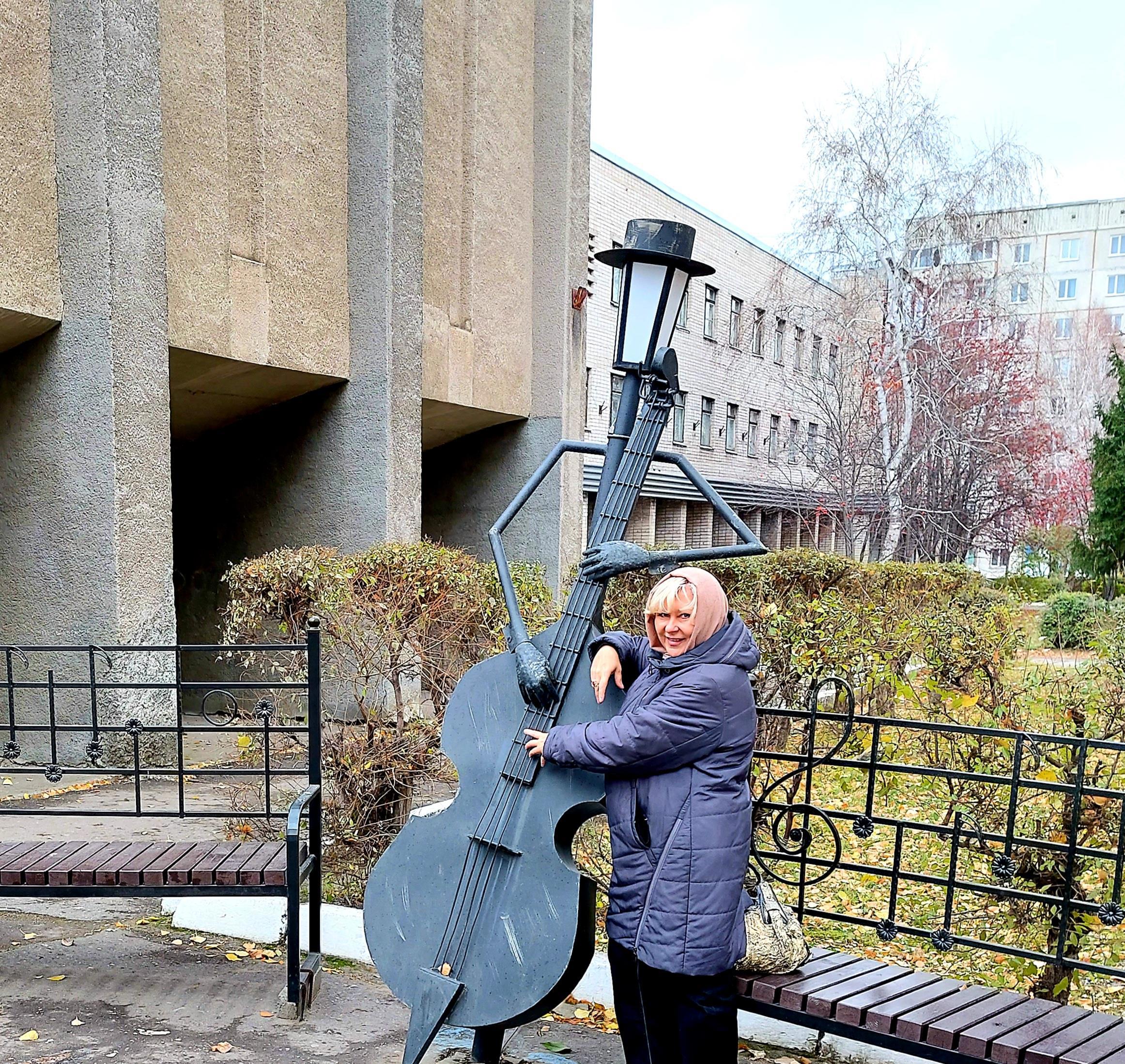 А пройдя чуть дальше, мы увидели забавные фонарики - в виде музыкантов у фасада детской музыкальной школы, этакий джаз-банд, ажурный чугунный рояль и скамеечки в виде нотного стана, а ещё очень много красивых аллей с рябинами.