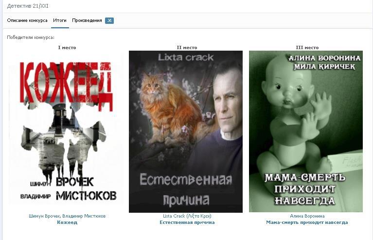 Еще хочу сказать огромное спасибо организаторам конкурса и администрации АТ! Author.today - вы самые лучшие! Такой поддержки авторов я не видела ни на одном литературном сайте. И, конечно, поздравляю всех победителей и участников! Ваши работы, безусловно, заслуживают внимания! А любители детективов наверняка найдут среди них те, что придутся по душе, обратите внимание на шорт-лист конкурса.