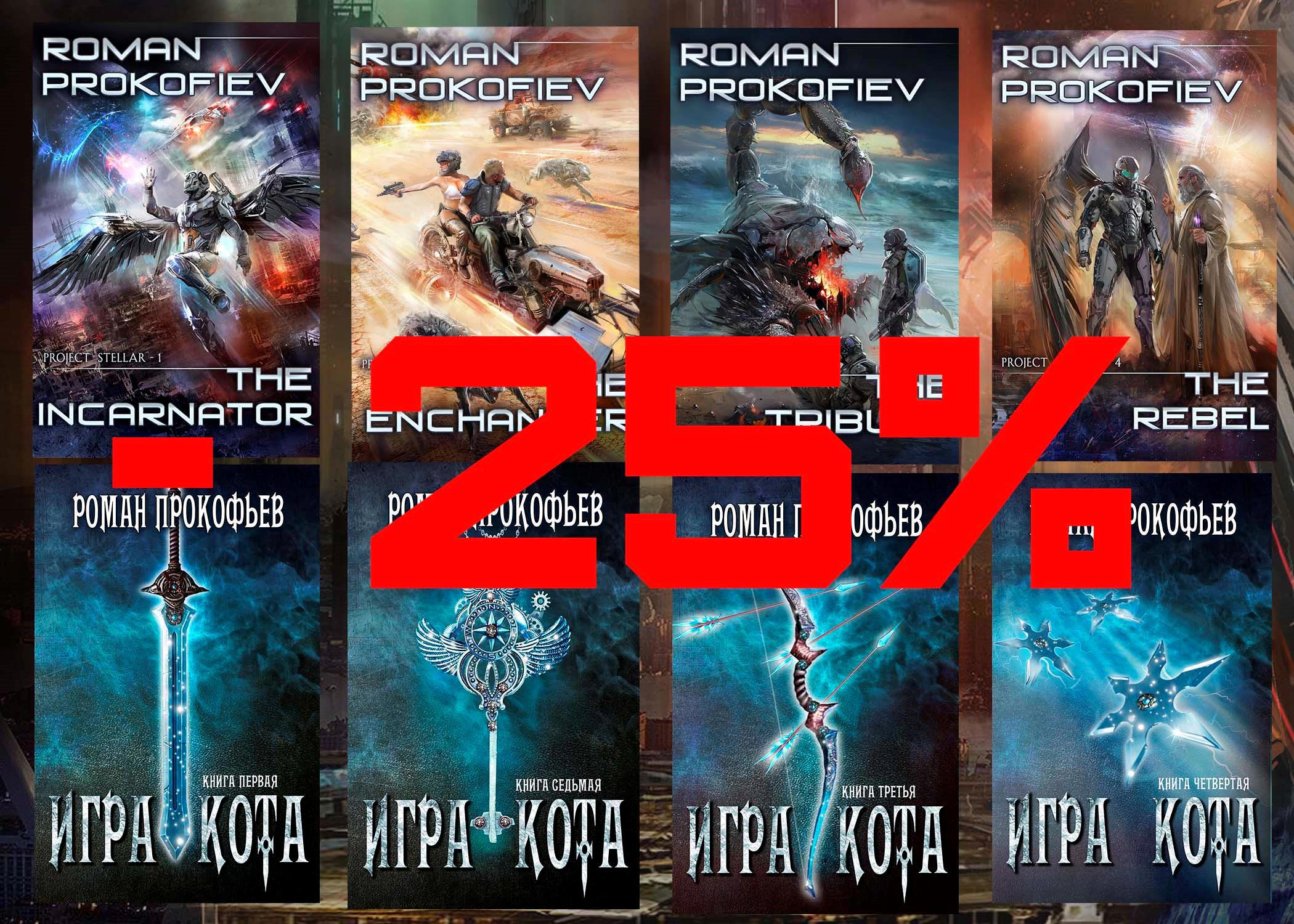 Сегодня у автора ДР (42 годика стукнуло), в связи с этим на все книги (кроме текущей подписки) на АТ, объявляется трехдневная распродажа с дисконтом 25% (25 октября же).