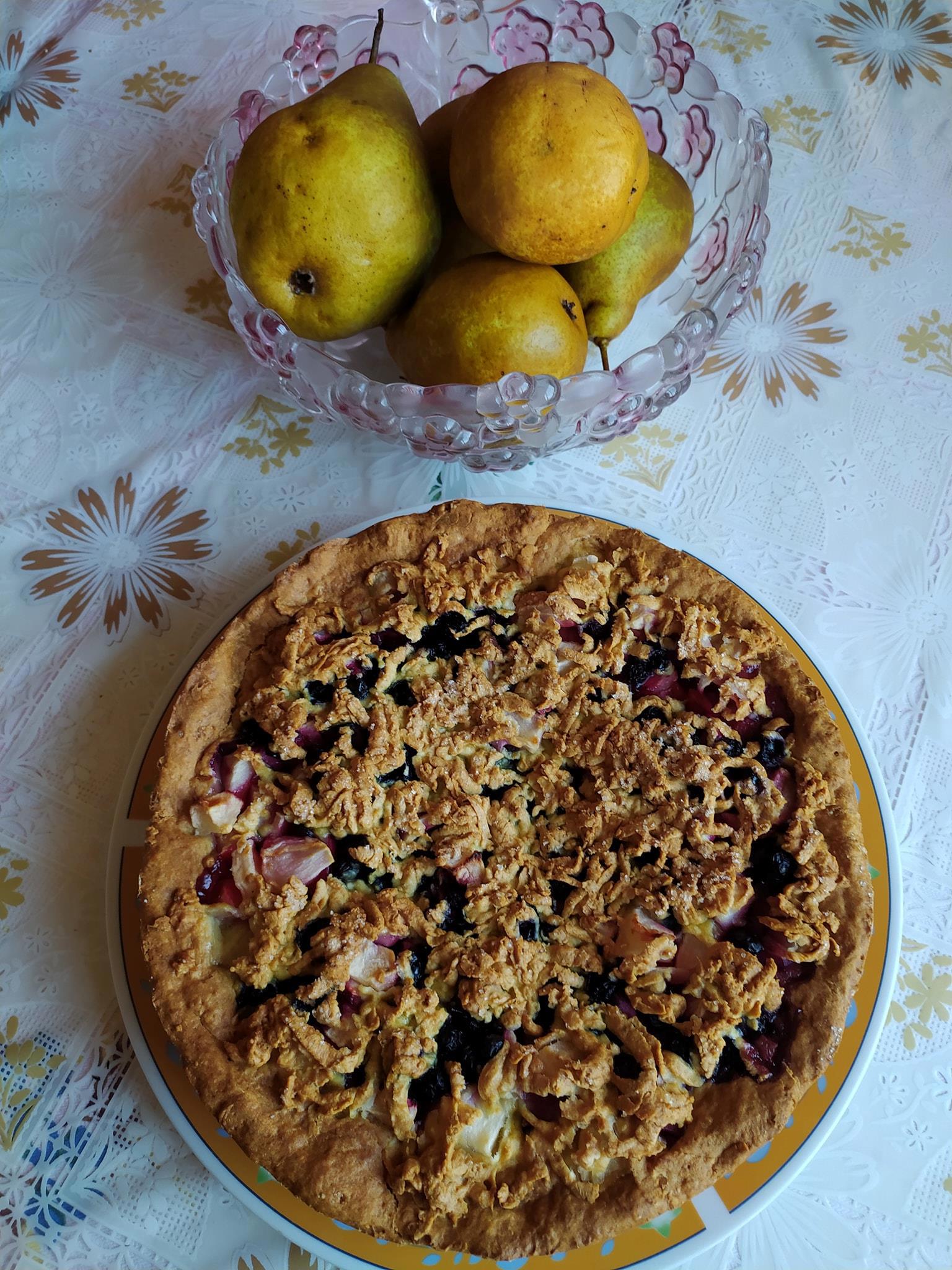 Автор: Наталья СолнцеваЛитературные шедевры решила перемежать кулинарными. Предлагаю вашему вниманию натюрморт "Груши и пирог с яблоками и черникой". Груши из нашего сада. Пирог домашний, очень вкусный. Может, вдохновлю кого-нибудь испечь!