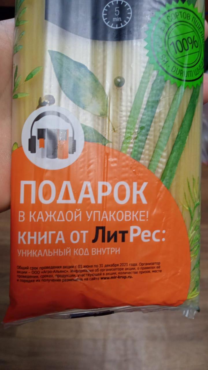 1. В "Красном/Белом" сейчас продают макароны с промо-кодом на бесплатную книгу на ЛитРес.
