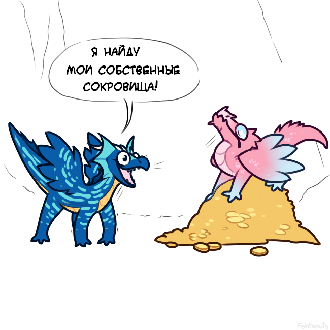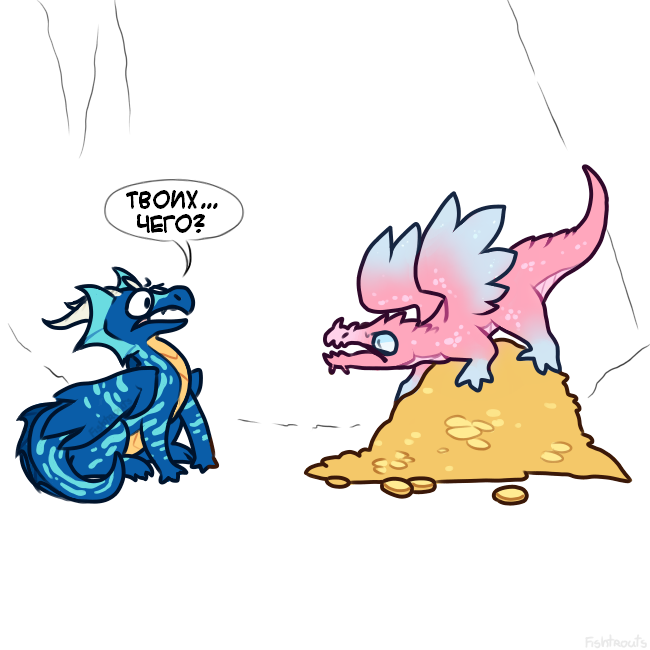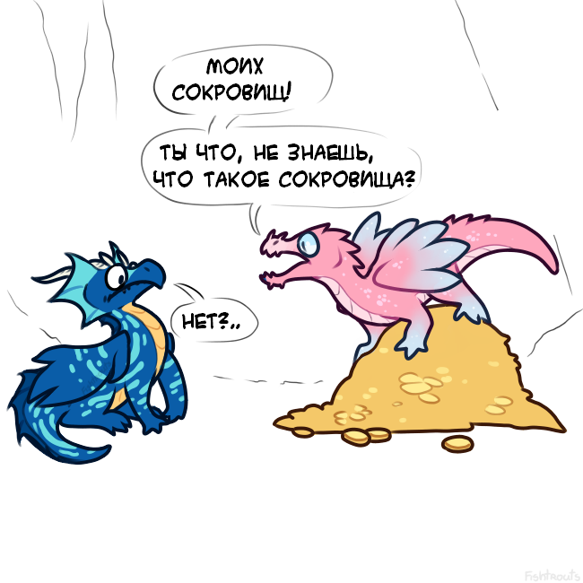 Про этих очаровательных дракончиков я перевёл всего пару выпусков - они не очень удобные, разбитые на отдельные картинки, но в красоте и мягком юморе им нельзя отказать. Надо будет заняться ими поплотнее - синий и розовый в них два главных персонажа.