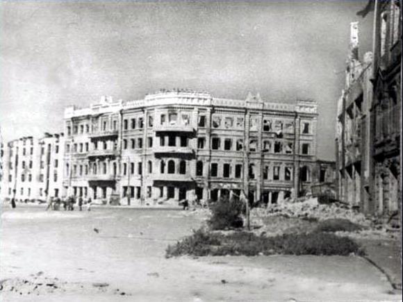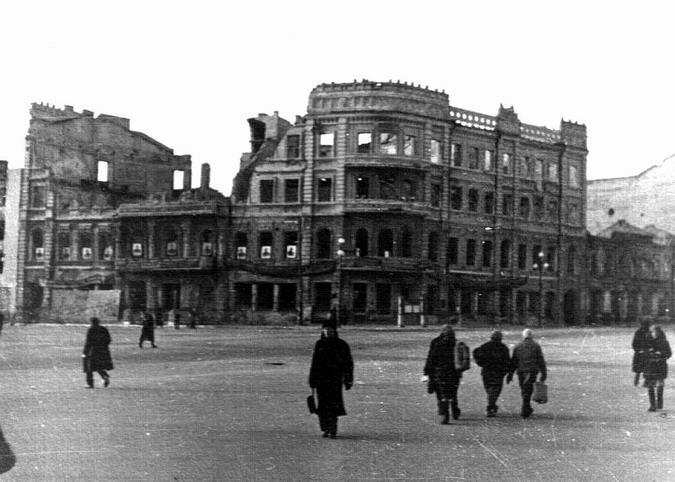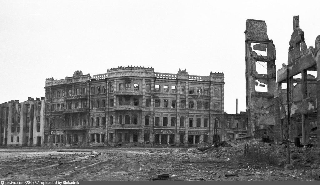 Автор: ЛиСиЦаИтак, во время Сталинградской Битвы Дом Красной Армии (перестроенный Дом Яблокова) пострадал, но не был разрушен - фото 1943 года: