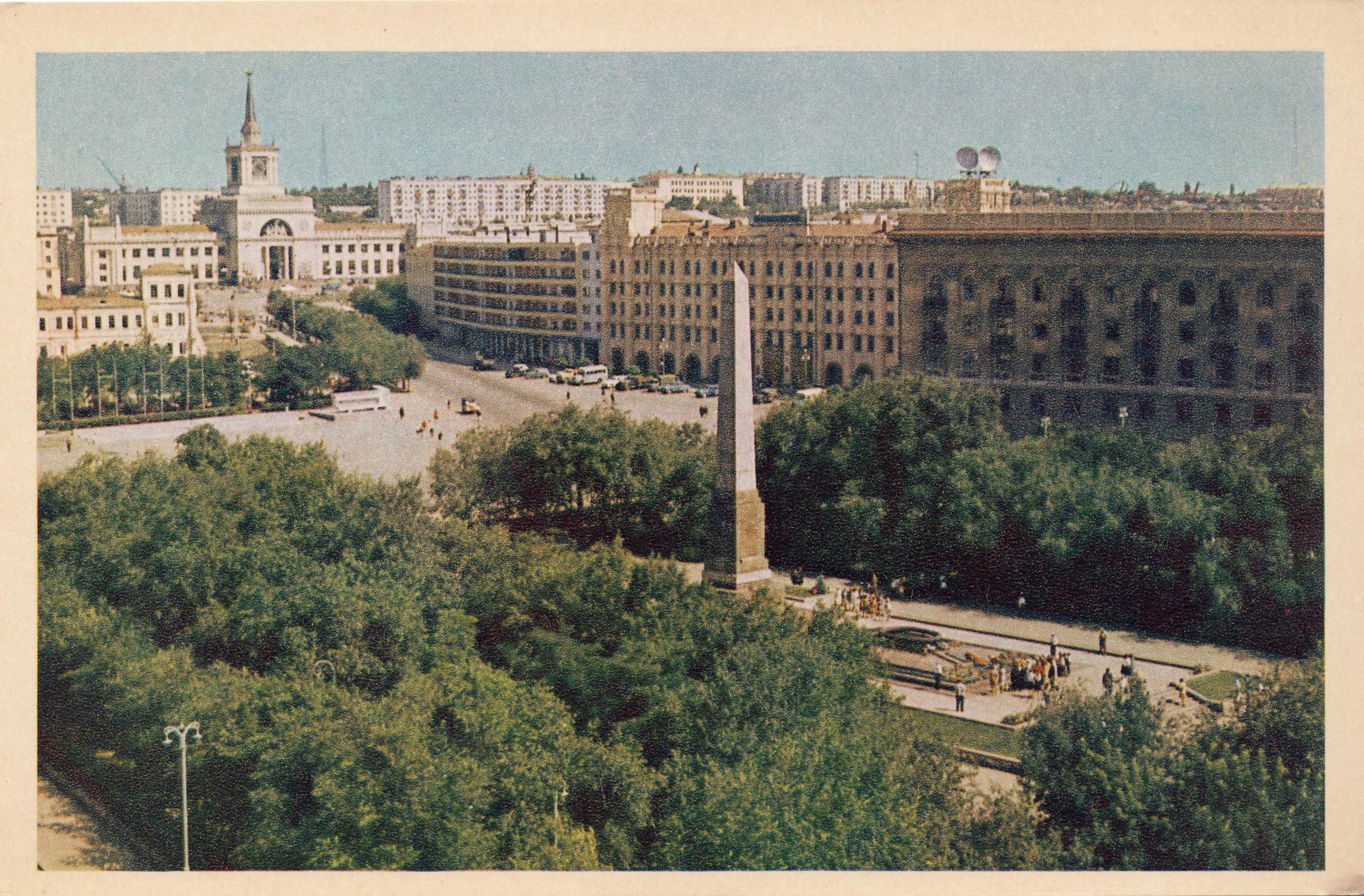 В чём была причина демонтажа, несмотря на катастрофическую нехватку более или менее целых зданий? Если приглядеться, то на фото, например, даже в том, что осталось от гостиницы "Большой Сталинградской" https://author.today/post/207504 , временно приютился, то ли магазин, то ли какая-то контора, но она ведь находилась уже не в 34-м квартале, а на другой стороне улицы Гоголя. Какая же такая судьба была уготована этому кварталу, расположенному прямо за главной площадью Города? Об этом было здесь - https://author.today/post/122013 - весь квартал планировался под гигантский новый Дом Советов. Однако, этим планам не было суждено сбыться: большинство зданий было снесено, а квартал стал называться Затрибунной частью Площади Павших Борцов или попросту "Затрибункой". На этих (не ранее 1969(!) года - уже построена "Волжаночка" - https://author.today/post/126612 ) фото, сделанных с разных сторон, видны всё ещё уцелевшие и даже использовавшиеся "Последние из Могикан" 34-го квартала - в частности так называемый "Флигель":