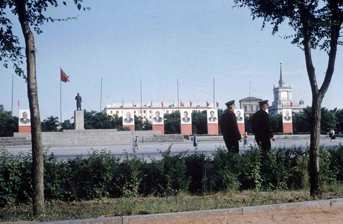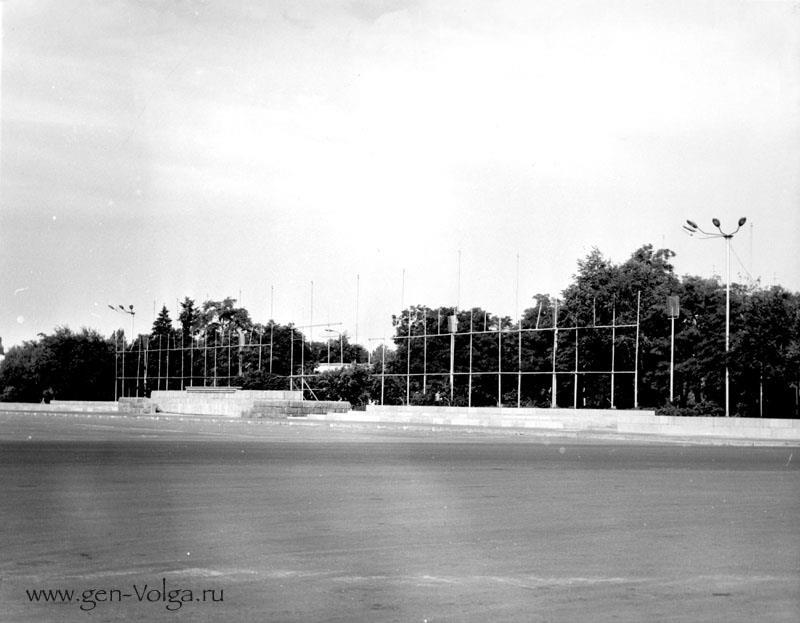 Почему "Затрибунка"? Потому что оказалась она за вновь построенными при реконструкции площади трибунами, на которых стояли партийные и советские руководители во время первомайских и ноябрьских демонстраций. Фотографии пятидесятых (с памятником Сталину) и восьмидесятых (будничная, без портретов) годов: