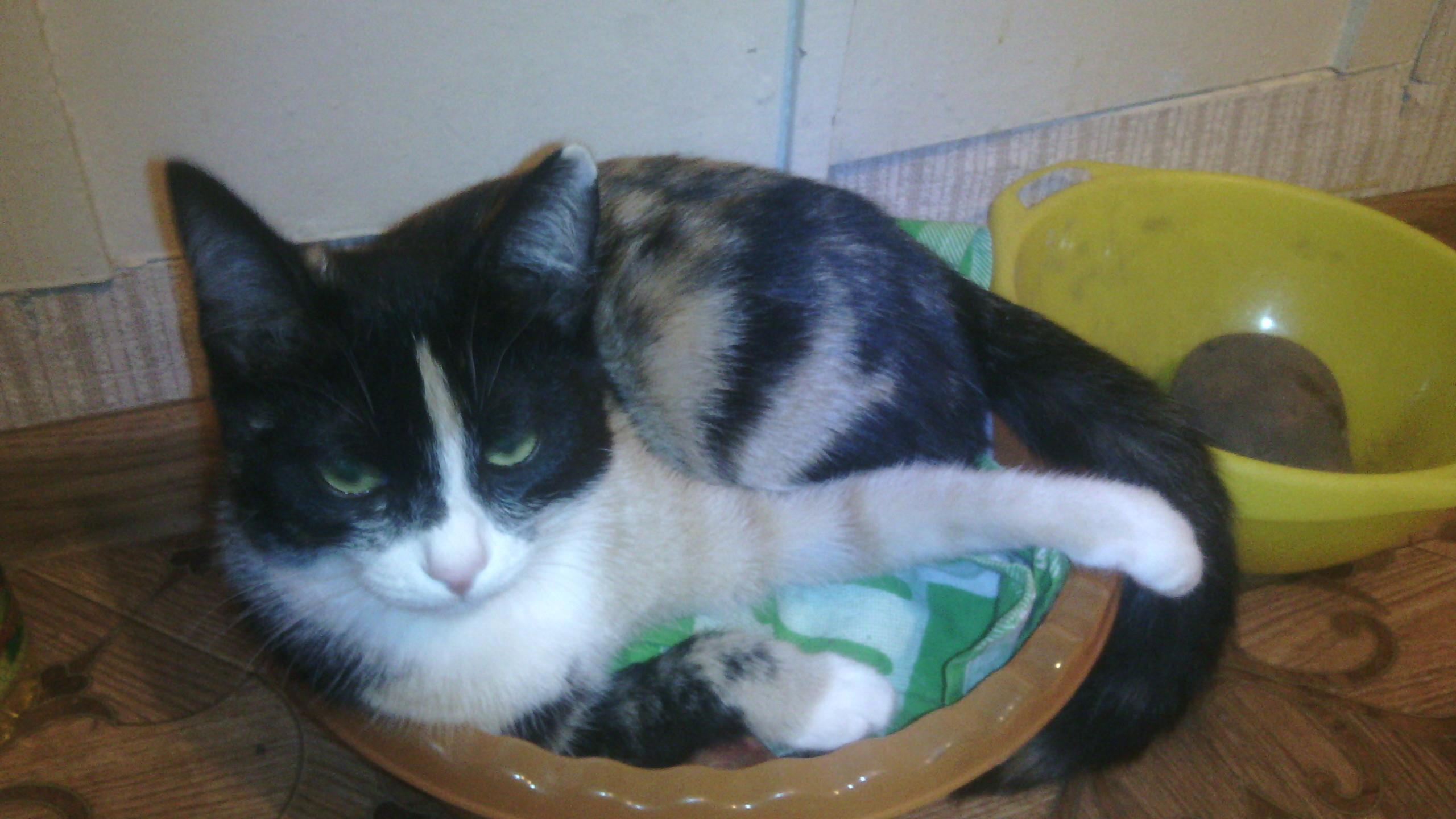 Ей 7 лет и она живёт у младшей сестры. Её подобрали на улице ещё котёнком.