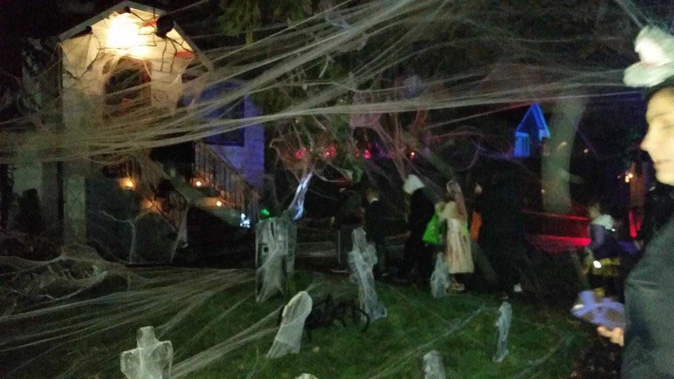 Креативные жители устанавливают целые инсталляции к празднику. И духи у них за окнами летают, и скелеты из гробов выскакивают и страшные звуки сотрясают ночь.