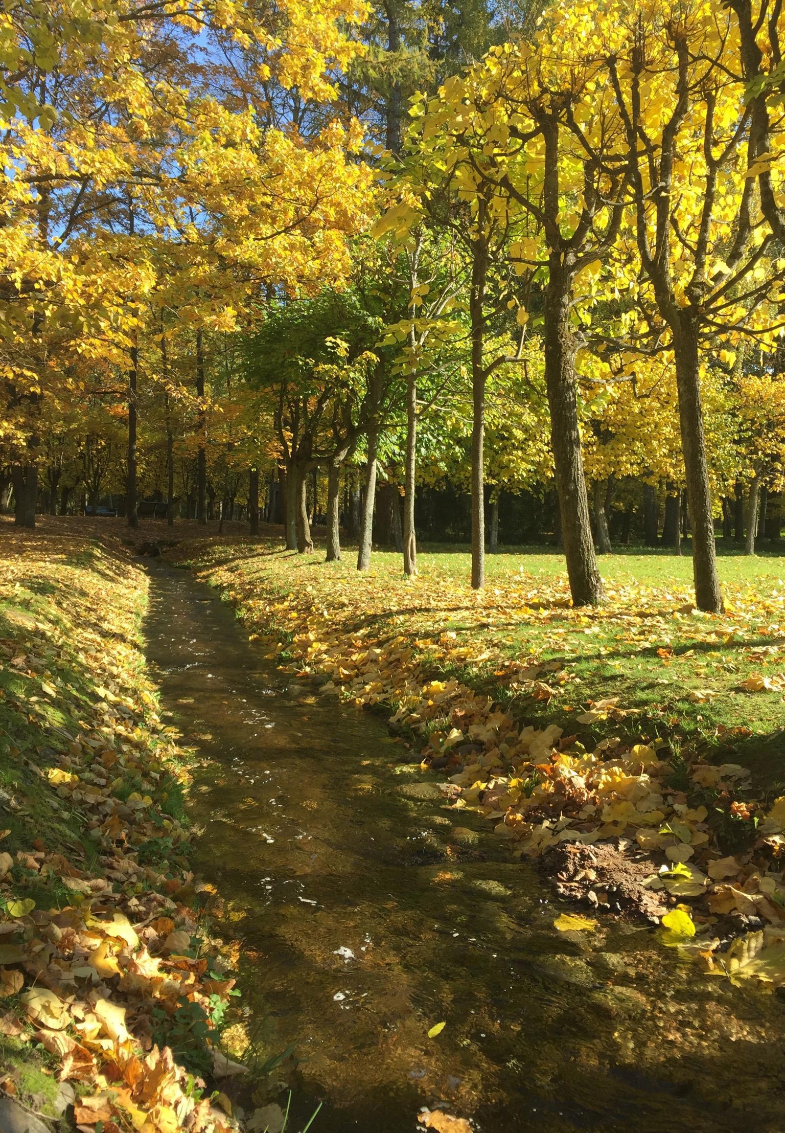 Он покорил своей красотой не только меня, так что рядом собралась небольшая толпа гуляющих. Была среди них пара: дама в лихо надвинутом на одну бровь берете и мужчина... не помню в чем. Дама оказалась маньячкой фотографии, желающей заснять на телефон едва ли не каждую травинку и листочек. Она этот ручей с какого только ракурса не снимала, я признаюсь ждала, когда она туда бултыхнется.
