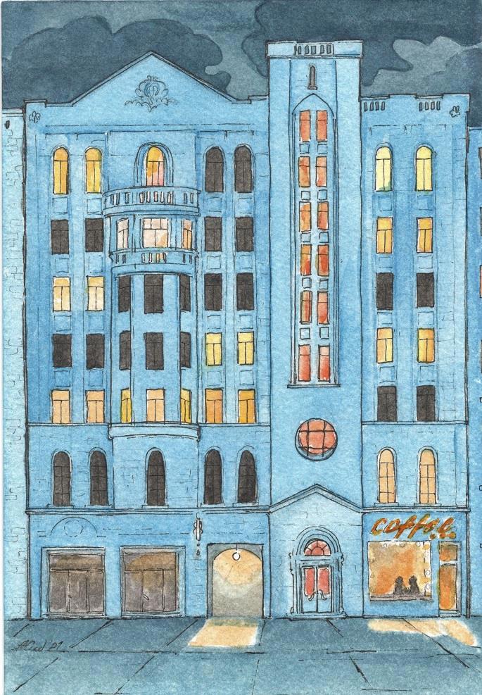 Вообще я люблю окна, и сколько себя помню любила. Их теплый свет в сумерках. Можно заглядывать в них во время прогулок; пытаться представить, как живут люди в доме вот с этими люстрами или занавесками, этими цветами или котом на окне. Не из зависти или жадности, а так — из любви к историям... Эта картинка именно об этом.