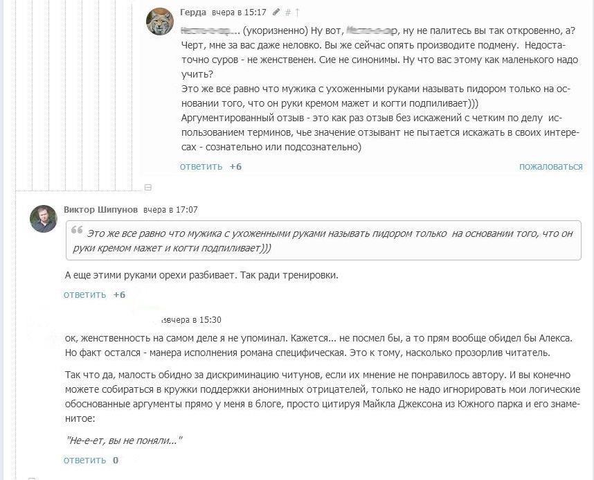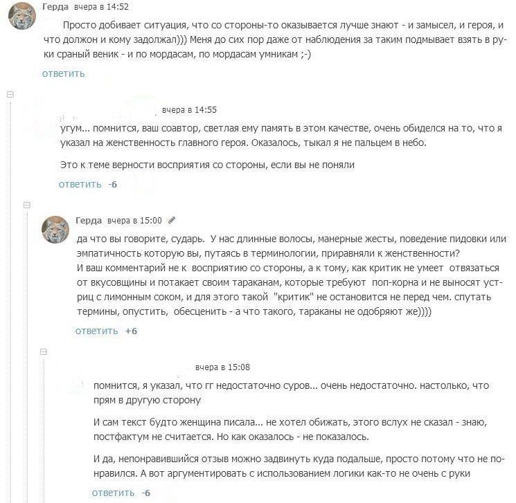 Смотрите как здорово раскручивается ветка - от "а ваш герой женственен", через неточное использование терминов, внесения в синонимический ряд терминов, которых в нем нет до - " я же ничего такого не говорил".