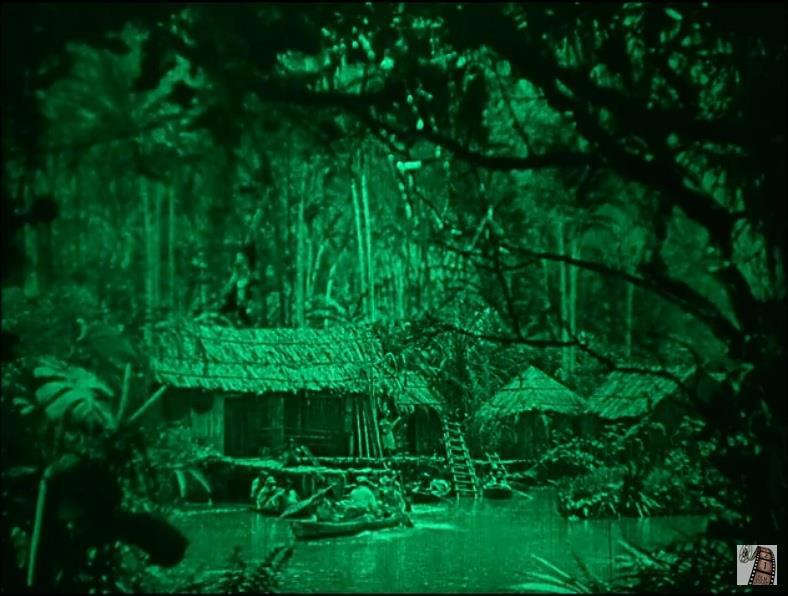 На пути к "Затерянному миру". На фоне хижин пирога с путешественниками.