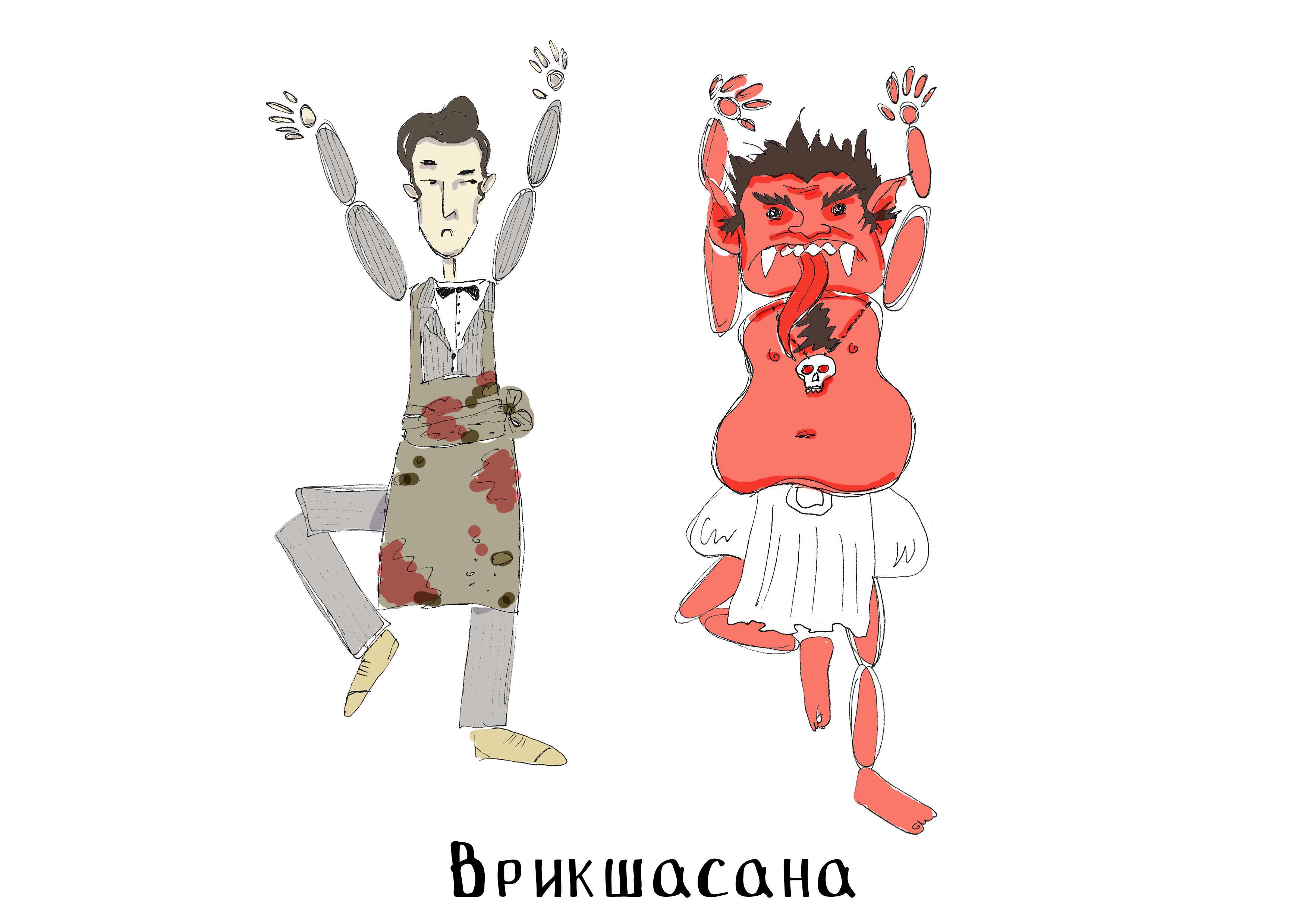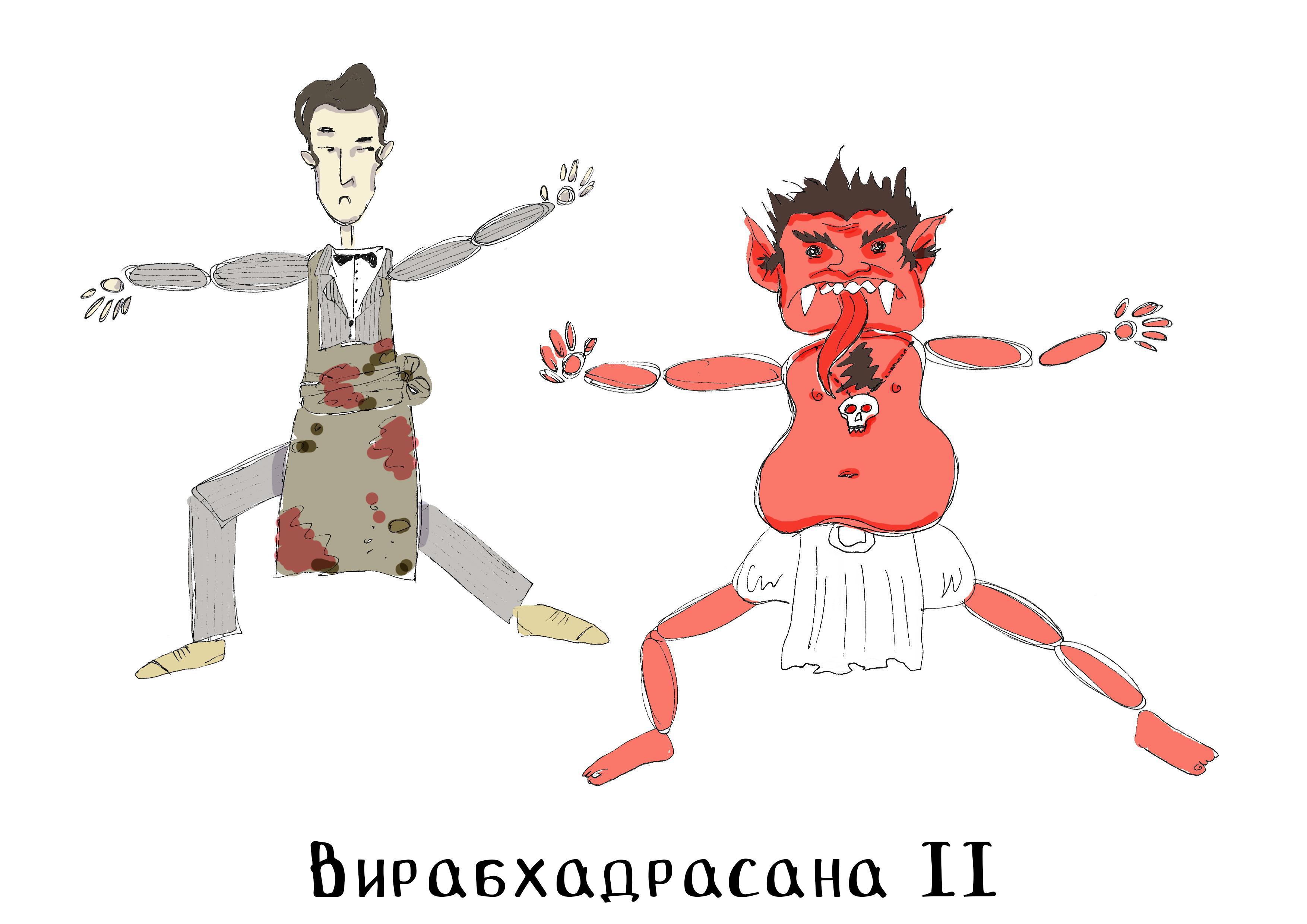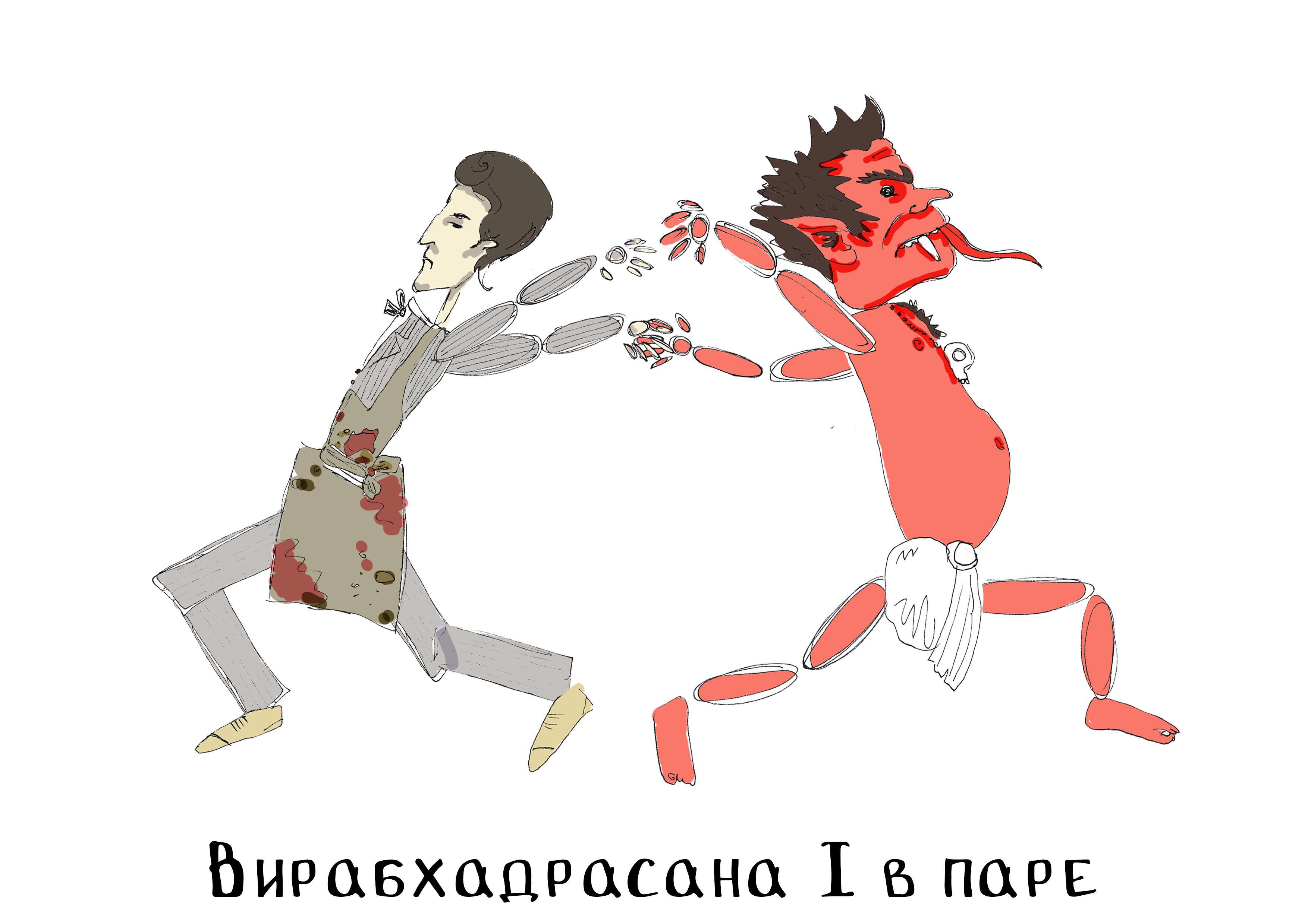А потом меня чот попёрло, я нарисовала, как монстролог не охотится на индийского монстра, а учится у него йоге. Я только забыла, как монстр называется, но он настоящий (я всё гуглю).