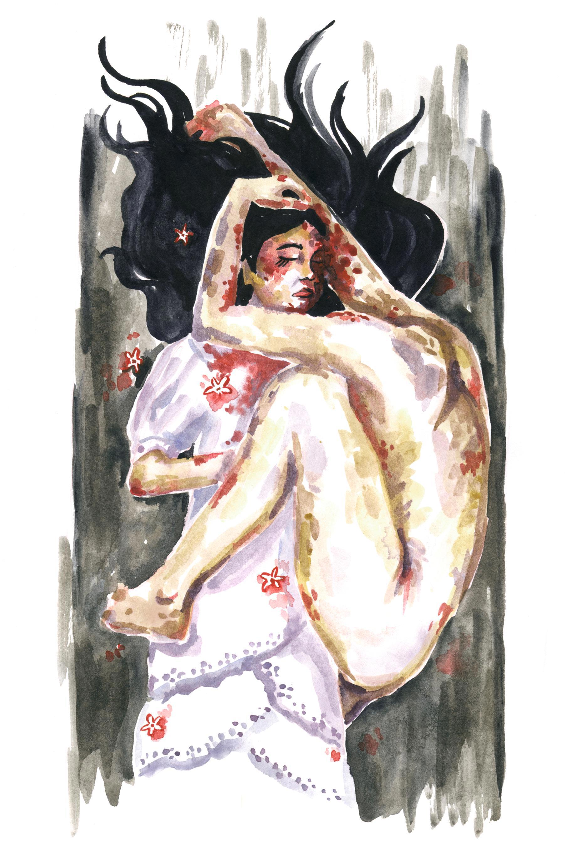 Потом я нарисовала шыдевер. Эта сцена из первой части сразу же, сразу в голове у меня представилась как знаменитая фотография Энни Лейбовиц.