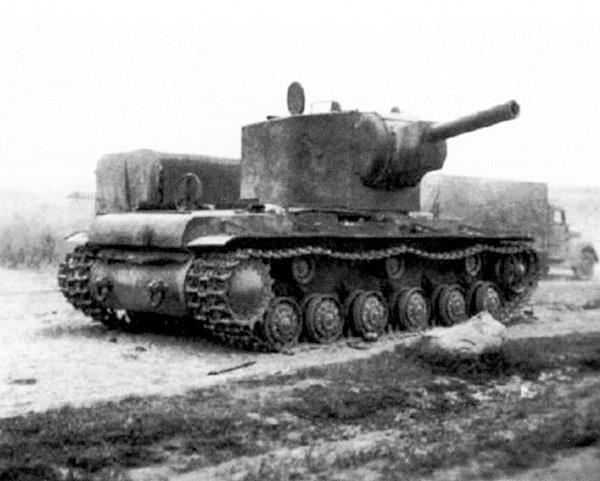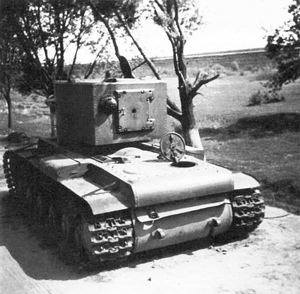 КВ-2, оставленный из-за поломки или отсутствия горючего. Машина входила в состав 41-й танковой дивизии 22-го мехкорпуса . Июнь 1941 года