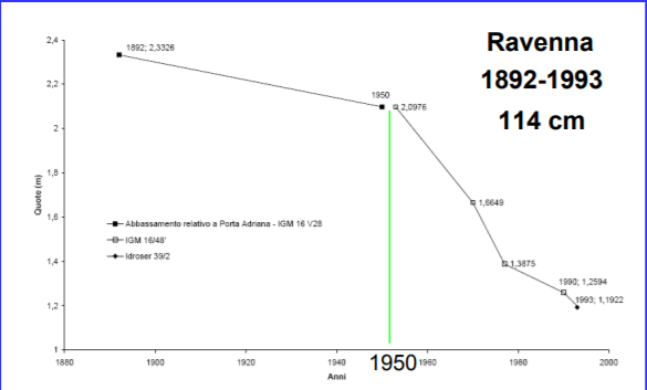 Из-за болотистого грунта Равенна медленно оседает.