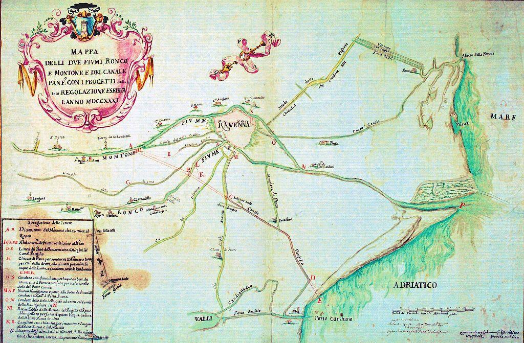 Сводная карта проектов регулирования рек вокруг Равенны. 1731 год.