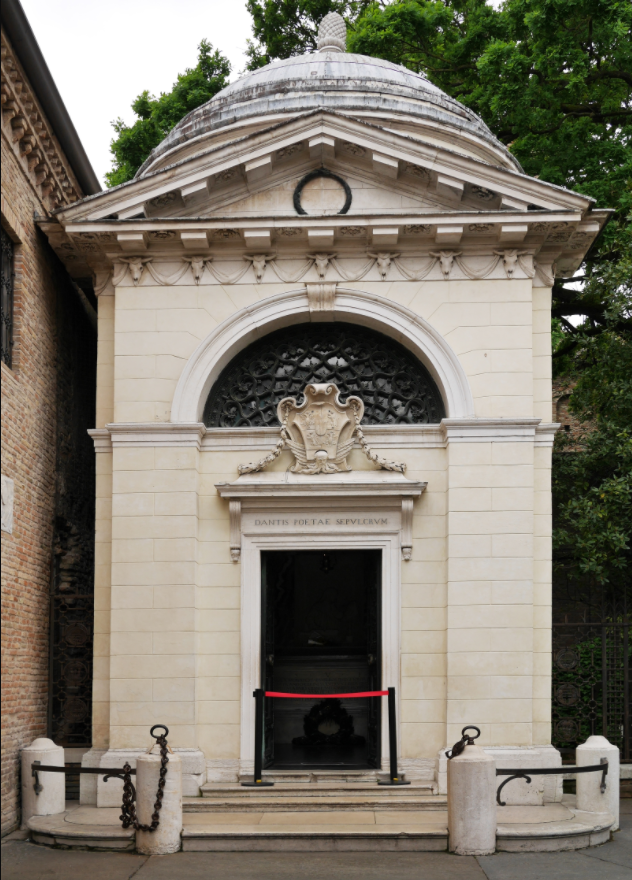 Сначала великого поэта торжественно похоронили в базилике Сан-Франческо, но с течением времени его гробница обветшала и обратилась в руины. В 1780 году папский легат кардинал Луиджи Валенти Гонзага повелел построить мавзолей Данте. А в 1865 году по невероятной случайности обнаружился прах великого поэта, который хранили монахи-францисканцы. Так что с тех пор мавзолей Данте даже хранит останки одного из главных основоположников литературного итальянского языка.
