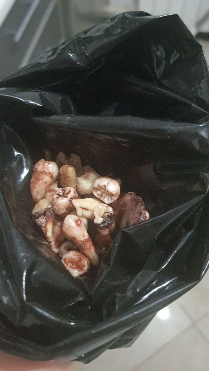 Это действительно человеческие зубы. И да, у меня действительно есть мешочек человеческих зубов дома. Подарил читатель.