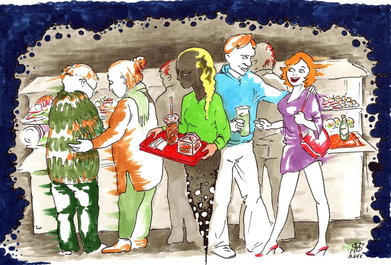 Она уставилась на поднос в своих руках: яркий стакан с шипучим напитком и горячая булочка словно олицетворяли центр вселенной.