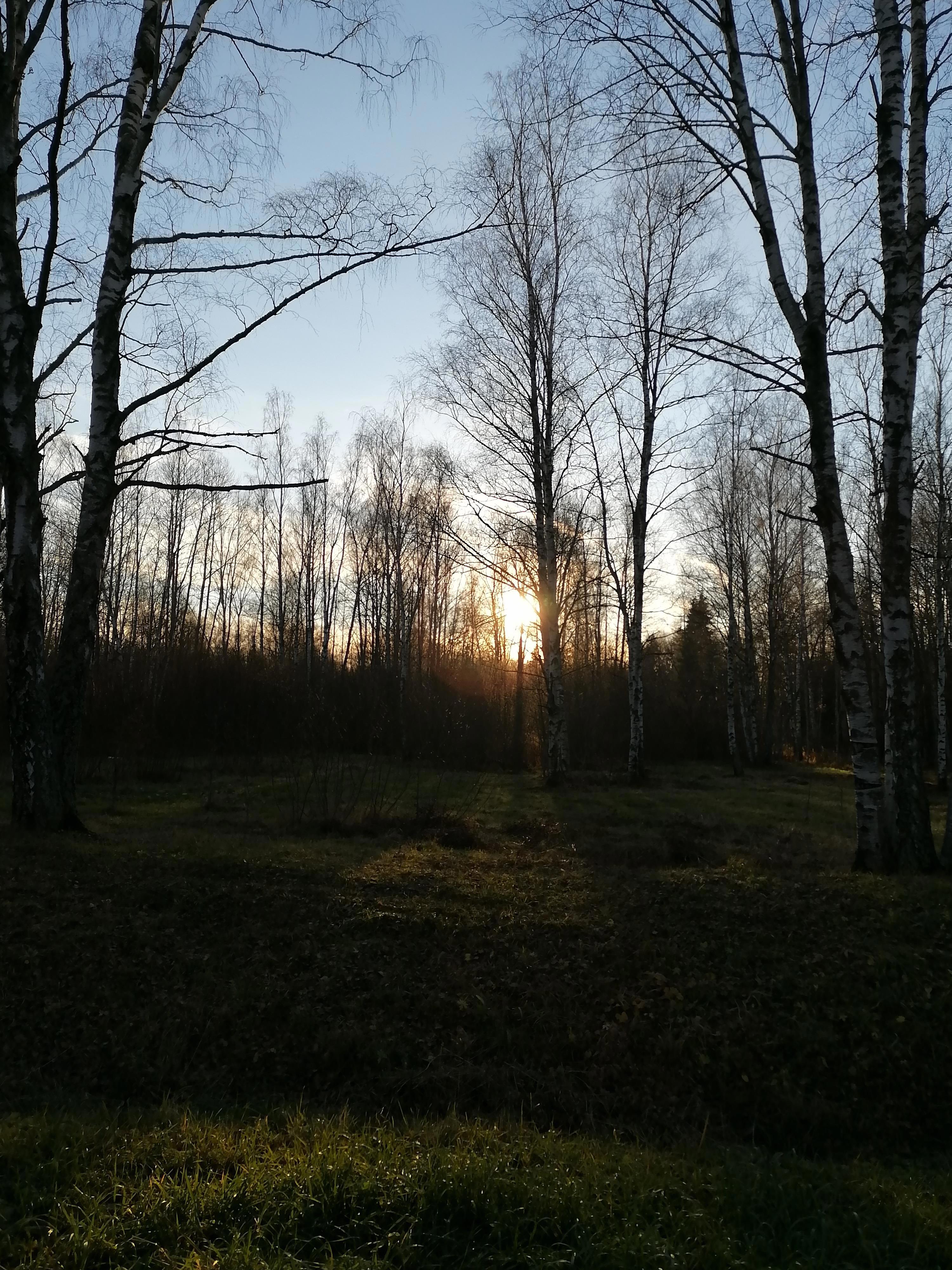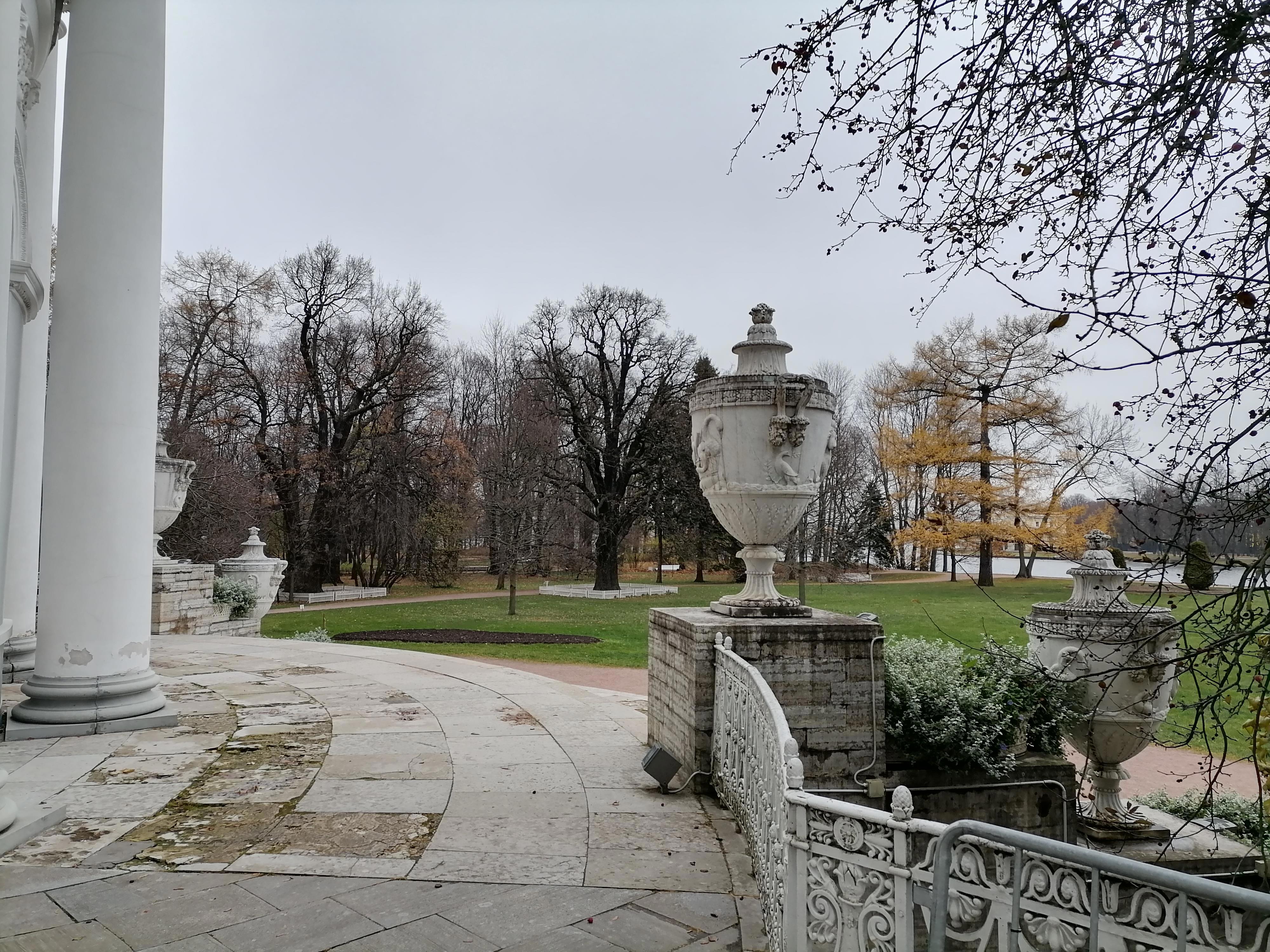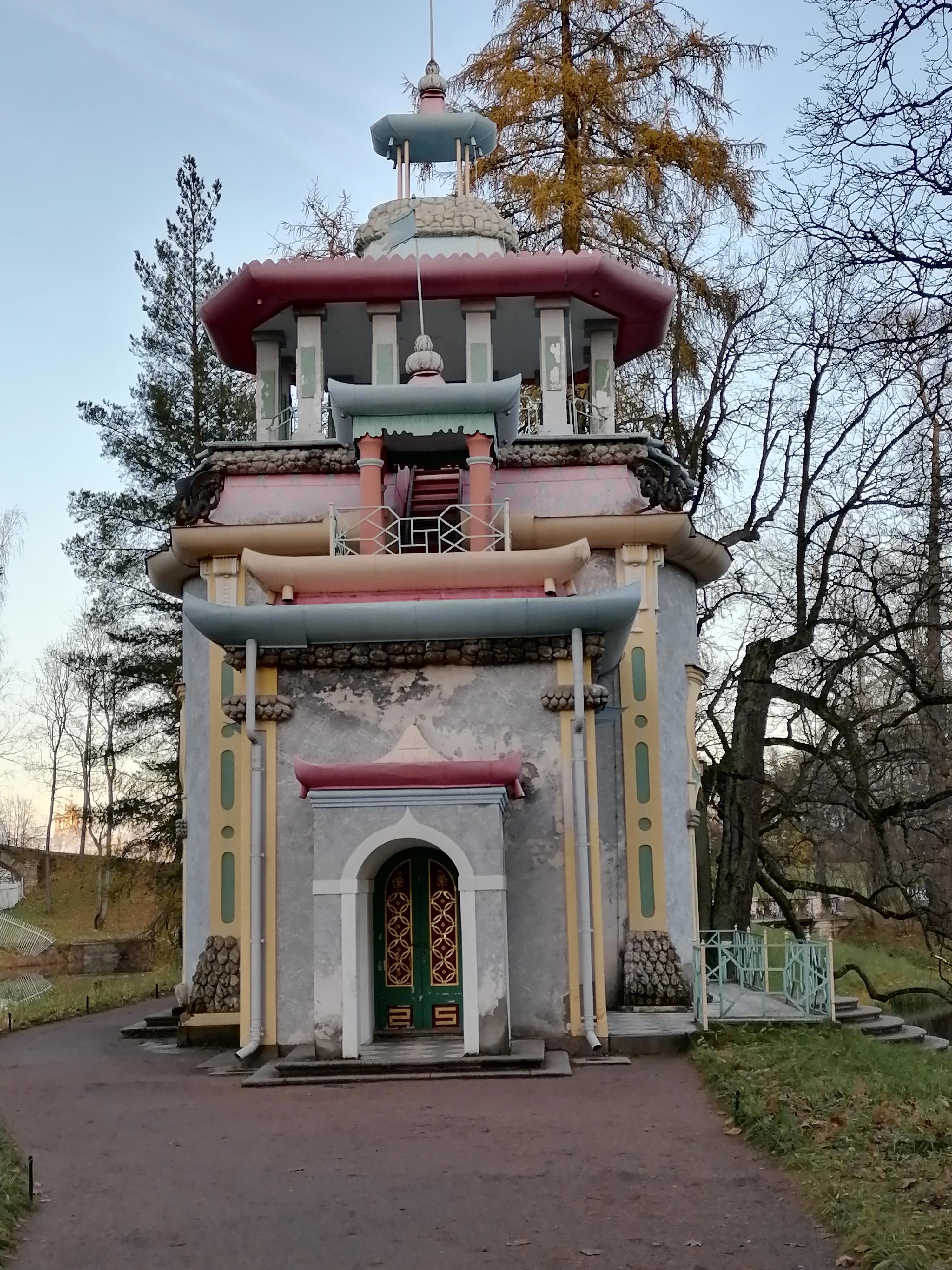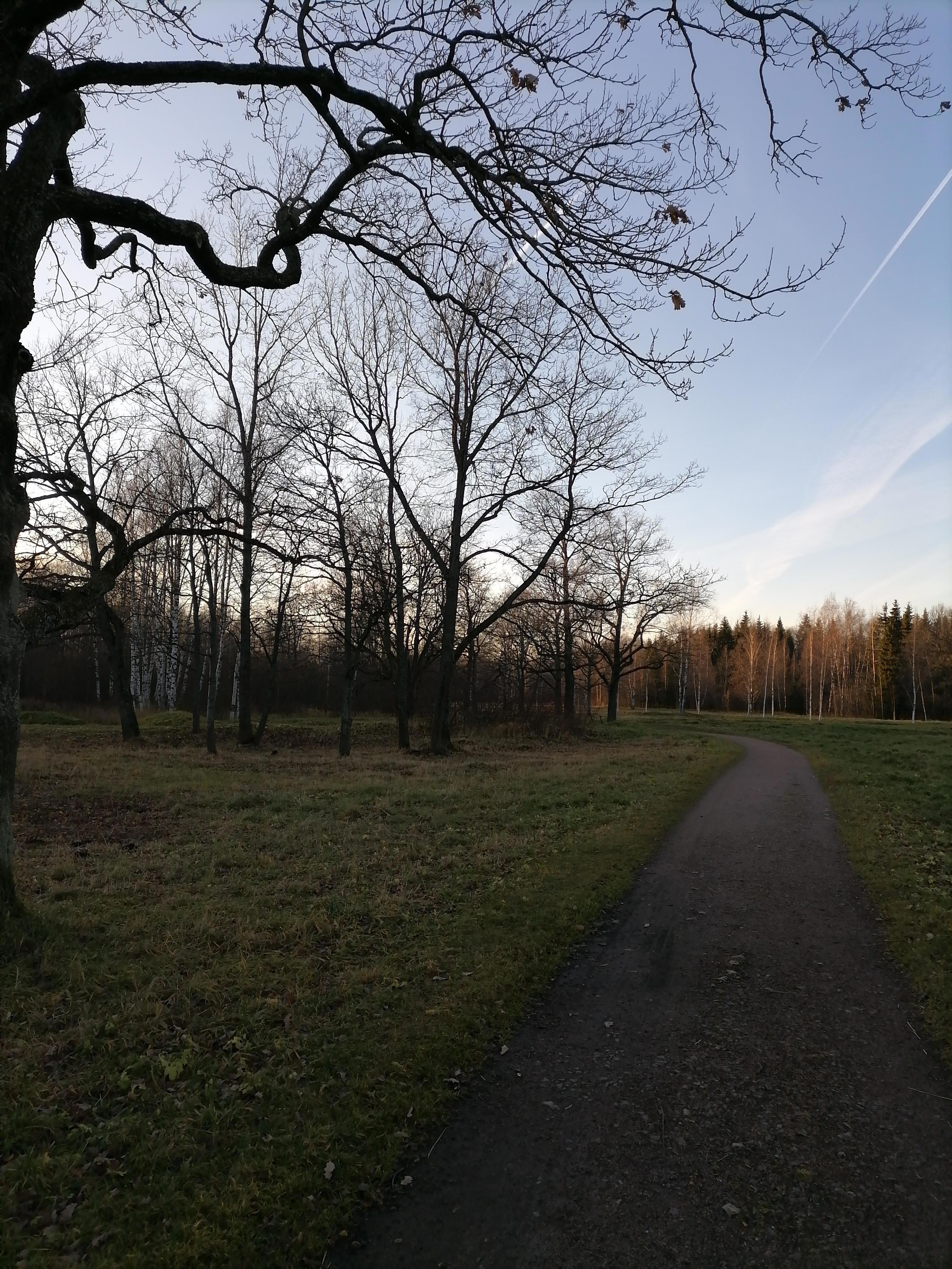 В продолжении променада мои фавориты, в Пушкине. Александровский и Баболовский парки. Я про них уже делала пост, но для них неизменно отыщется место. Потому что в такие осенние, прохладные дни, когда влажный воздух пахнёт сырой землёй, терпким дымком от местных домиков и солнце стремглав ускользает за горизонт видно, насколько здесь примечательно. В Баболовском мы сыскали недурную просеку, отдельно идущую в стороне, от основных маршрутов. И поистине, испытываешь единение с природой. Высокие изломанные деревца, кора с прозеленью, мох на корнях и оголённые ветви. Канавки с тёмной, торфяной водой, что отображает небо и кроны задумчивых елей. Но самое диковинное это не та безбрежная тишина, что стоит окрест. И даже не бурелом, на другой стороне. А то, что у деревьев имеются глаза. И нет, это я не передышала лакомым воздухом и не объелась мухоморов, коих там в достатке. Именно что глаза. Которые прямо-таки наблюдают за тем, как ты шагаешь по тропе мимо. Кому-то взаправду может сделаться неприютно или даже боязно. Но что до меня, это не так. Стоит лишь притронуться к серой, с небольшим зеленоватым налётом коре, как на душу снисходит невообразимое успокоение, пробивающее до слёз своим ликованием. И дальше ты топаешь, наполненная под завязку внутренней безмятежностью и благостью. И выйдя из парка, шествуя в обход Большого каприза, что нынче на ремонте, добираешься до Екатерининского парка. И хоть я там трудилась после института, осознаю, насколько мне бесконечно ближе та лесистость. Тем не менее Пушкин прекрасен, особенно в багряном свете осеннего заката. Когда солнце ещё пробирается через побеги, или отпечатывается на золотых куполах дворца. Даже Певческая башня, где в своё время были реставрационные студии, в алых лучах выглядит загадочно и необычно.