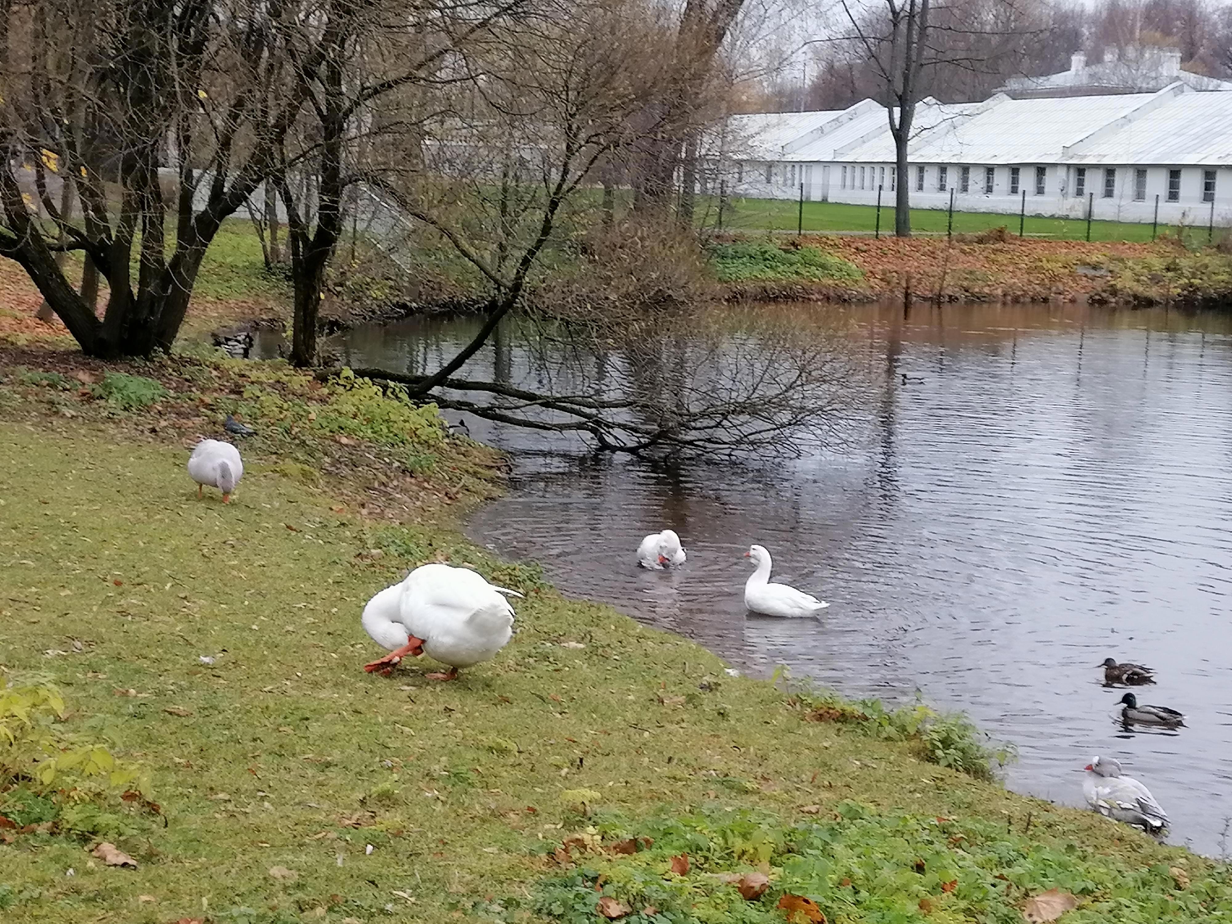 И начну я с одного из, по-своему, славных пунктов. Точнее — парк Авиаторов, что расположен между четырёх улиц. Или точнее, три улицы и один проспект. Благодатная, Бассейная, Кубинская и Новоизмайловский. Парк был основан в 1966 году, на территории Корпусного аэродрома, что после войны не использовался. В 1968 году открыли памятник военным лётчикам — самолет-истребитель МиГ-19. На это и обычно заканчивается культурная особенность местности)) Сам парк, заросший и полузаброшенный, только для тамошнего обитателя. Что в тёплое время печёт шашлыки и энергично купается в, не самом чистейшем, пруду. Но как раз это и притягивает для гуляний. Косяки уток и орды чаек тусуются на берегах водоема, бойко канюча «чё пожрать». Но прогуляться приятно, так как народу в парке в будние дни немного. Что радует.
