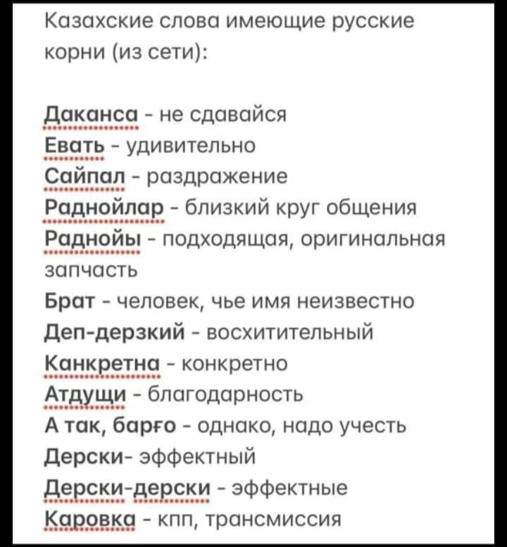А вот влияние русского языка на языки других народов. Сегодня для вас - казахские слова: