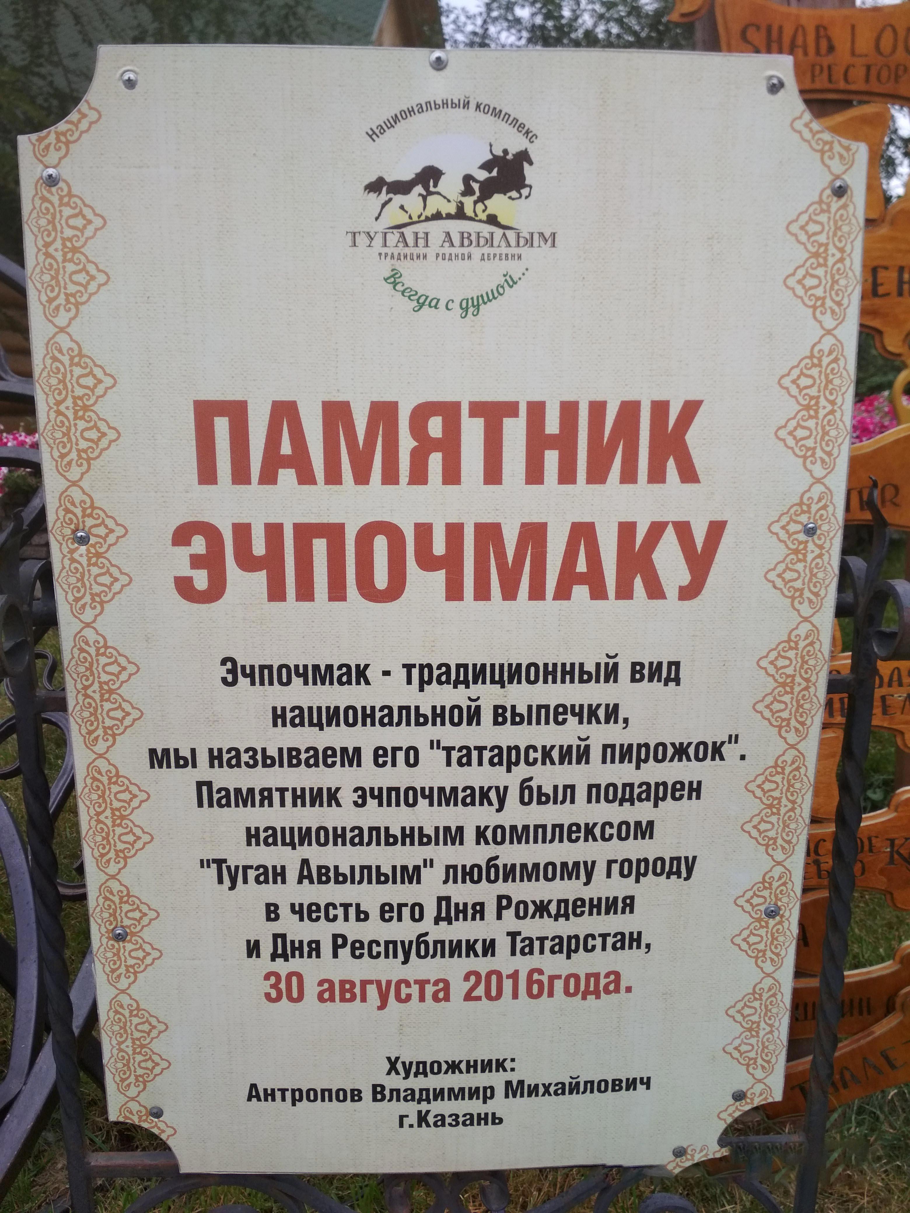 Казань была самой дальней точкой нашего путешествия. Но, до начала пути назад было еще целых три дня, которые мы намеревались провести в Казани активно. Благо здесь было на что посмотреть. Город хорошо застроен новыми зданиями, как современными, так и в духе древности. Много больших памятников и достопримечательностей поменьше. Еще по дороге к пешеходной улице мы набрели на памятник знаменитому #Эчпочмаку – местному пирожку в райончике, напичканном местными кафе и сувенирными лавками, где я попутно ощутил себя батыром, потягав деревянные гири. Оказывается, чтобы держать себя в форме, совсем необязательно покупать гантели, штанги и гири из металла, можно просто сколотить их из дерева.