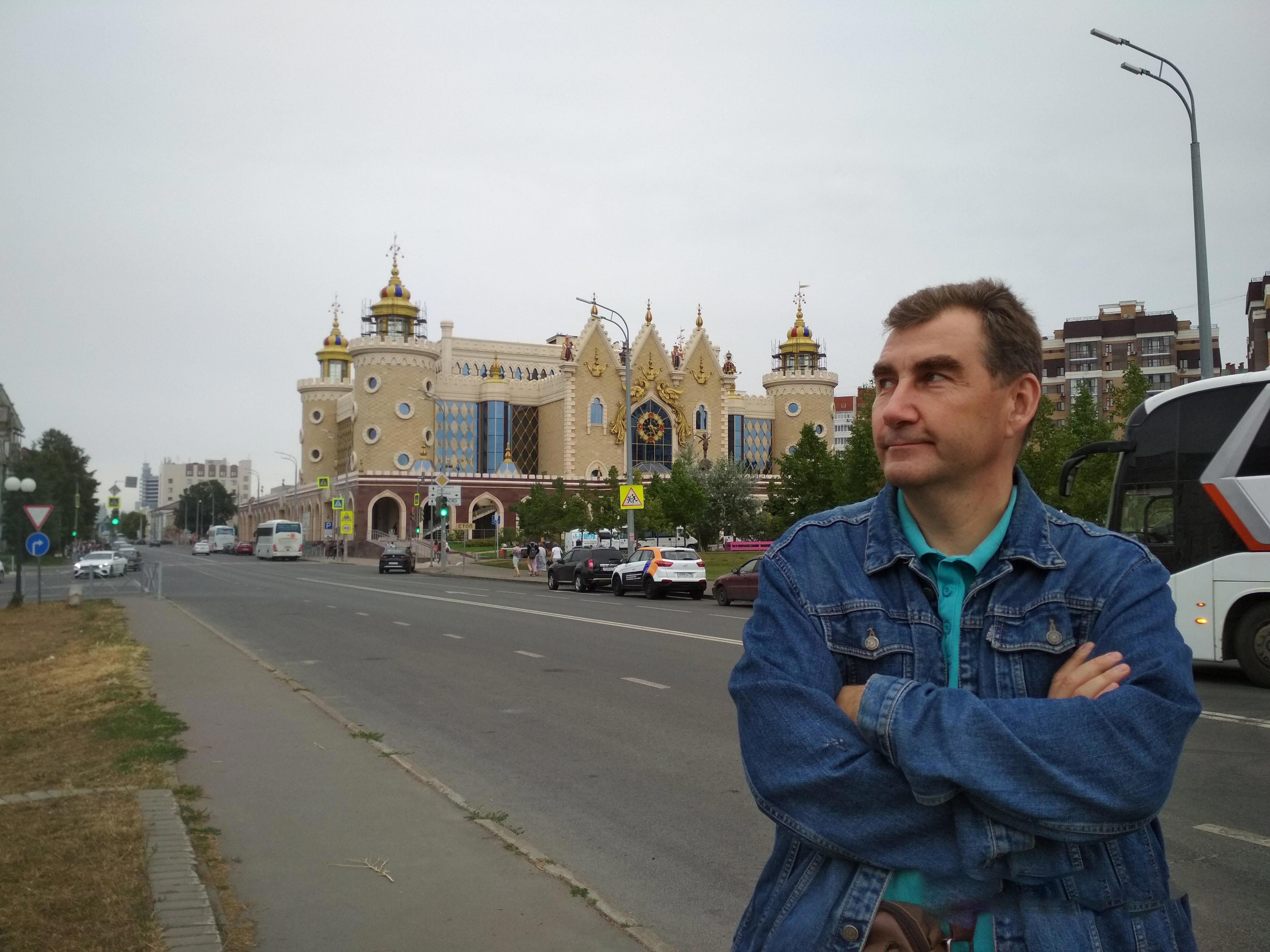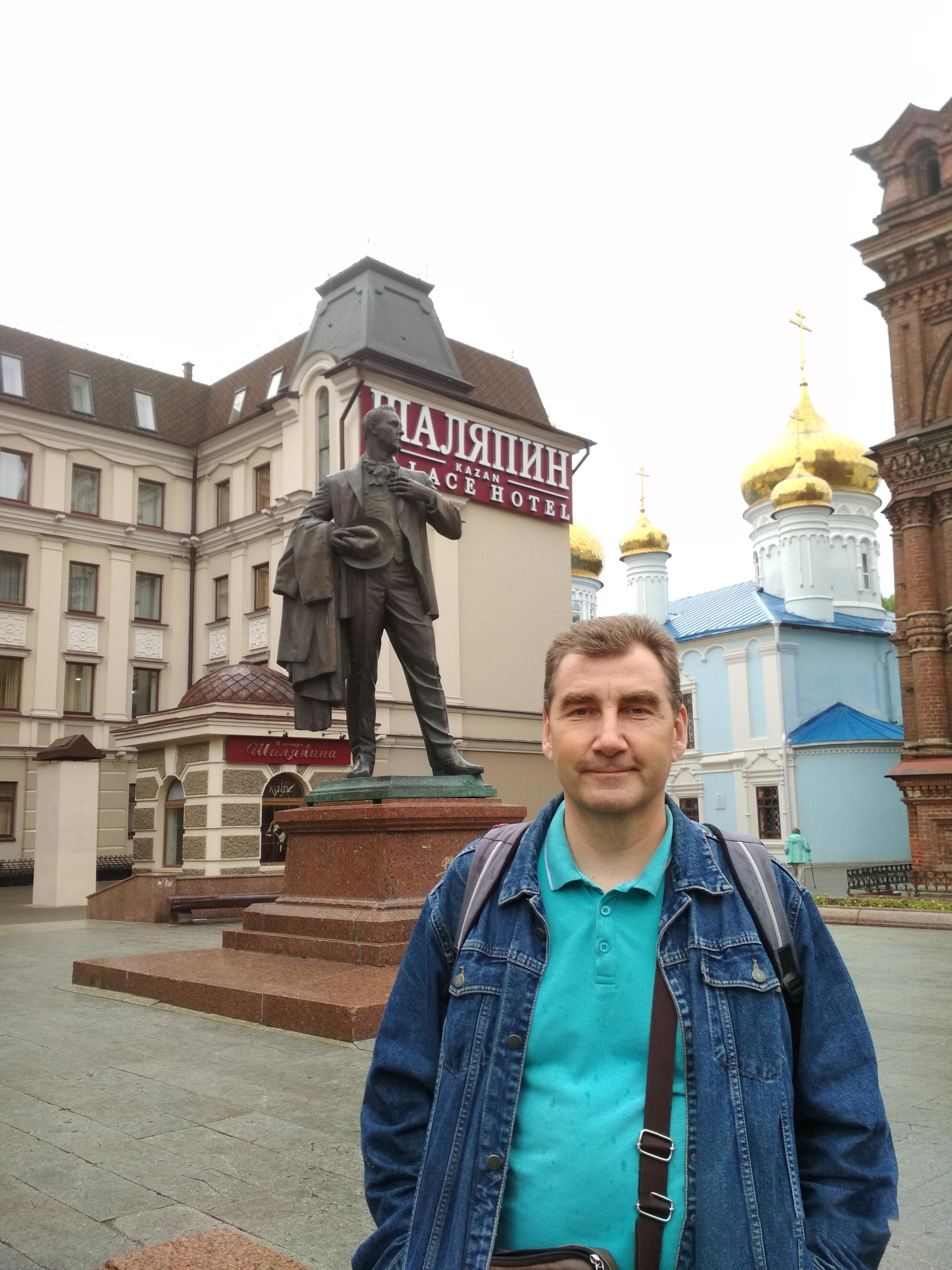 Нашим планам немного мешала личная тучка, которая так сильно прицепилась к нам, что продолжала преследовать даже в Казани, где ничего, кроме зноя и горячего солнца мы не ожидали увидеть. Увы, в первый день пребывания дождик следовал за нами по пятам. Поначалу было просто пасмурно. Рассмотрев древние трамваи и абсолютно сказочное здание кукольного театра, мы добрались до самого начала #Петербургской улицы. Но, не успел я купить местное мороженное, как начал накрапывать дождик. А потом, когда мы добрались до памятника Шаляпину, дождь вообще полил как из ведра, распугав толпы туристов. К слову, далее по дороге попадалось еще много мест связанных с именем #Шаляпина, это меня немного удивляло, т.к по своей серости я полагал, что он сюда приезжал только давать концерты. Но, как выяснилось позже, он здесь родился. Позор на мою седую голову! Некоторое время я рассматривал памятник Шаляпину, стоя под дождем. К счастью этот водный катаклизм длился не долго и, забегая вперед сообщу, оказался прощанием с нашей личной тучкой. Начиная с этого дня дождь прекратился и весь обратный путь до Питера был сухим и солнечным.