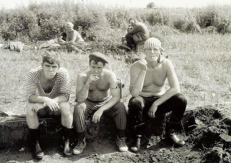 Вот они мы - это уже на следующий, 1990 год, раскопки бохайского городища в Краскино. Я - справа, Макс - слева, посередине Валерка Иванов, старший брат Макса и мой соученик по истфаку ДВГУ.
