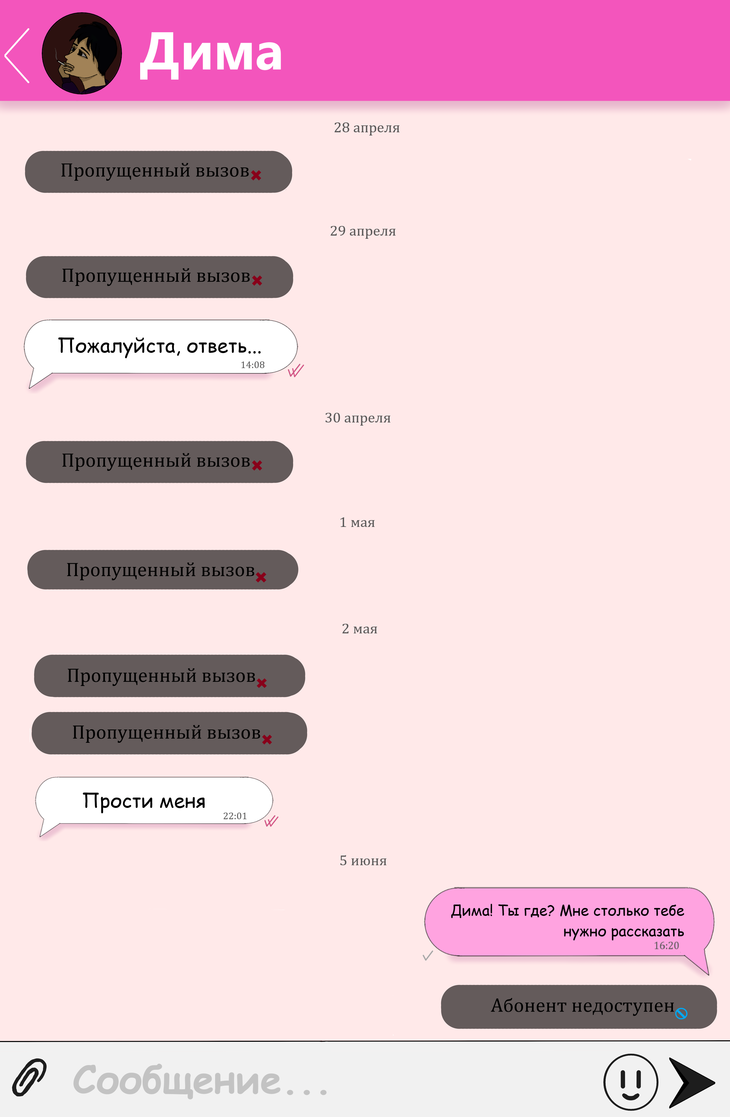 Это переписка Софии и Димы. Я хотела показать их общение до конфликта и после.