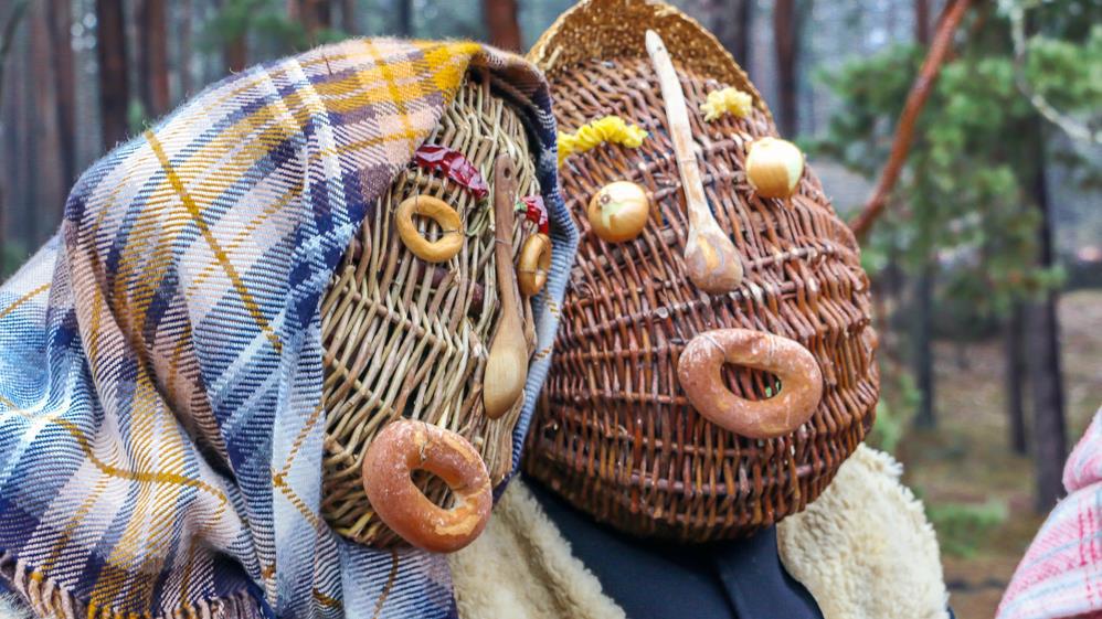 2) Духов нужно напугать, чтобы они захотели уйти обратно в подземный мир. Для этого нужны ряженые с бубнами, дудками и прочими шумелками.