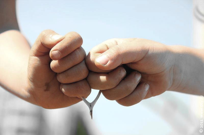 - А давай, - со смешком соглашается дед и начинает объяснять мне правило этой старинной игры-заклада. Двое берутся за концы косточки, разламывают её и произносят: "Бери да помни". С этого самого времени ничего друг у друга просто так взять нельзя. Когда тебе что-то дают, прежде, чем взять, надо быстро произнести - "Беру да помню". А если взял и не сказал, тогда дающий скажет - "Бери да помни", это значит, что он выиграл. Закладом стал целый килограмм шоколадных конфет! Если проиграет дед, он покупает, если я, то бабушка. То есть, конечно, так и так я с таким закладом в накладе не осталась бы.