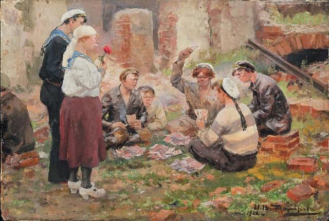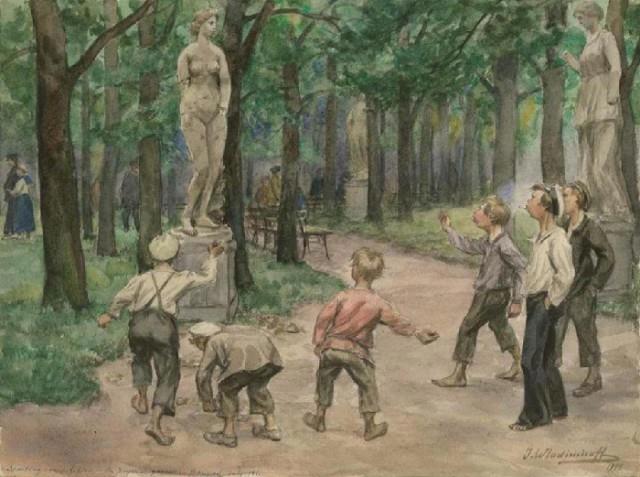 Развлечения подростков в императорском саду Петрограда. (1921). Автор: Иван Владимиров.