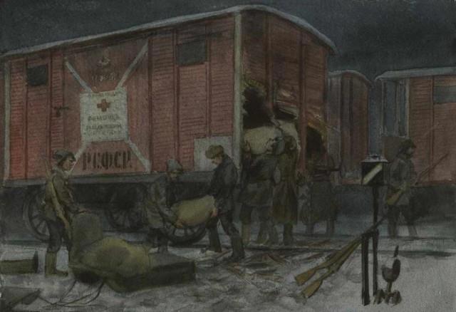Ночное разграбление вагона с помощью от Красного креста (1922). Автор: Иван Владимиров.