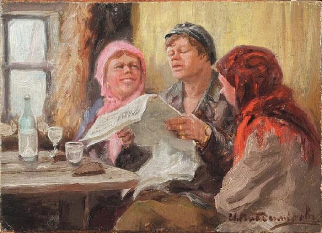 За чтением газеты «Правда». (1923). Автор: Иван Владимиров.