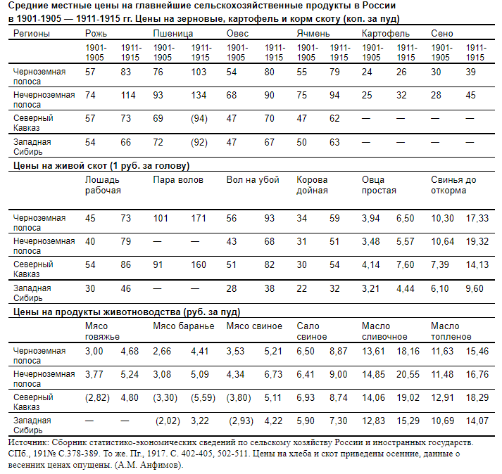 Интересно, что горожане мяса ели намного больше - в среднем более 4 пудов в год против 0.4 для деревни. Конечно стоит учитывать, что статистически Маша и Валя обе... Но не будем о грустном. Это лирическое отступление, а мысль была такова - крестьяне в основном питались растительной пищей, добирая белки молочными продуктами и яйцами, а мясо шло в основном на продажу. У горожан доступность молочных продуктов была ниже, поэтому больше внимания уделялось мясу.